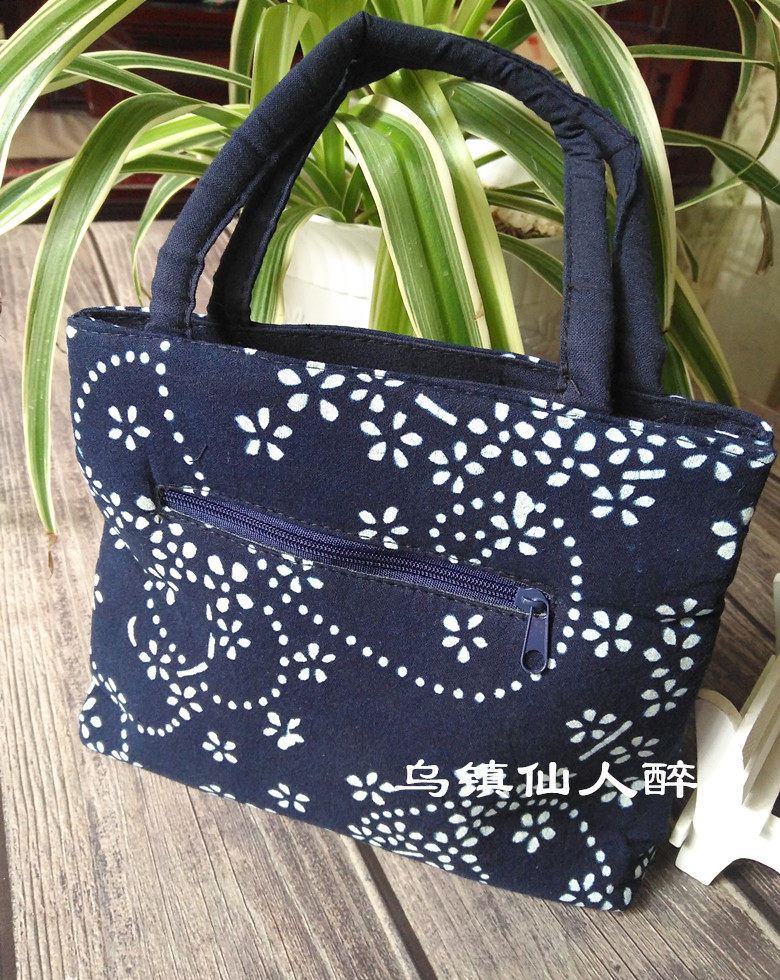 Wuzhen characteristic blue calico handbag ladies bag mother bag grocery shopping bag coin purse mahjong bag