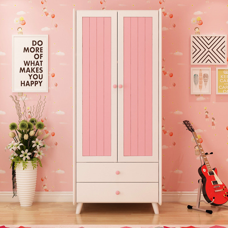 Solid wood American modern wardrobe two doors three doors push-pull storage cabinet Children's wardrobe storage cabinet with pumping adult pink