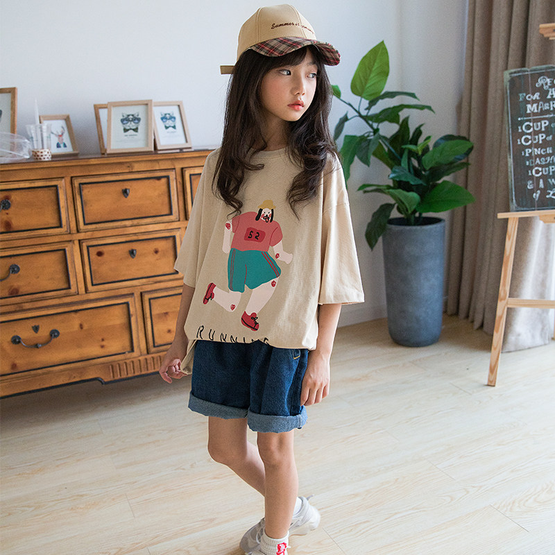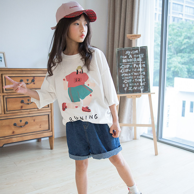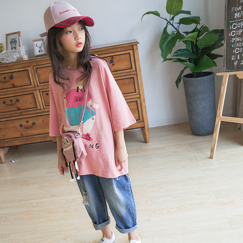 Girls' short-sleeved t-shirt 2022 summer new girl's Korean version of the middle-length loose half-sleeved bottoming shirt thin section trendy