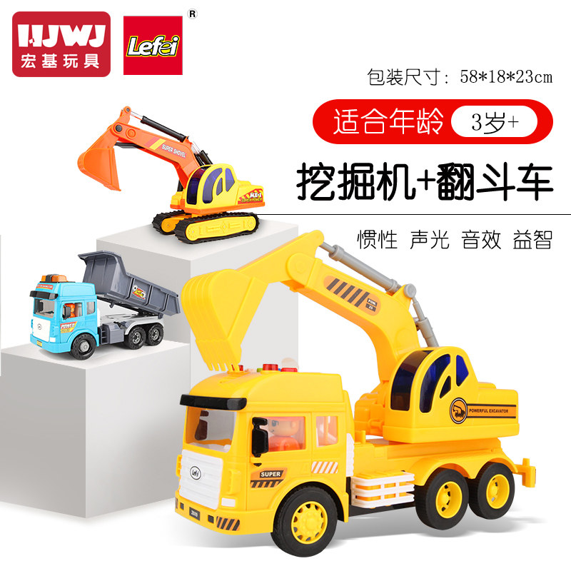 Lefei toy excavator dump truck excavator children's bulldozer music inertia puzzle early education sound and light model