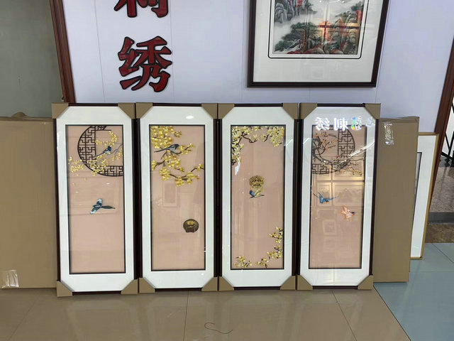 Suzhou embroidered gauze transparent belt frame finished strip screen Meilan bamboo chrysanthemum spring summer autumn winter landscape living room background wall