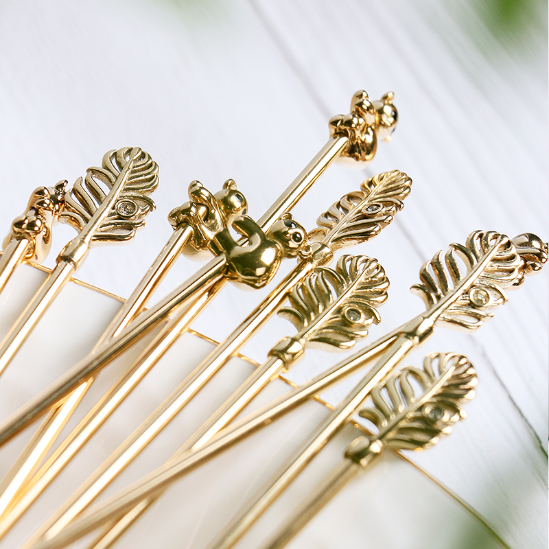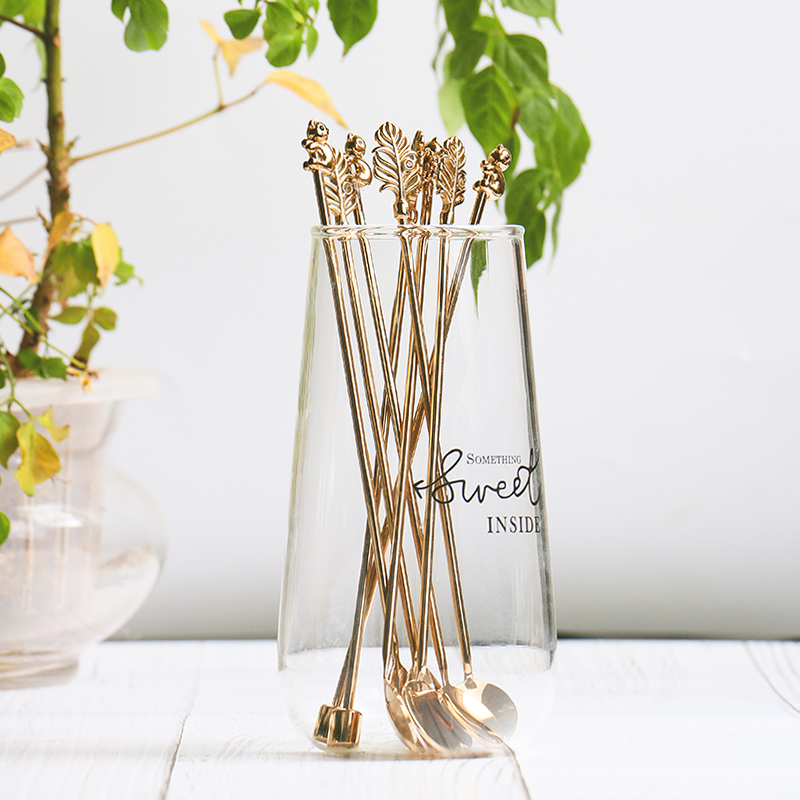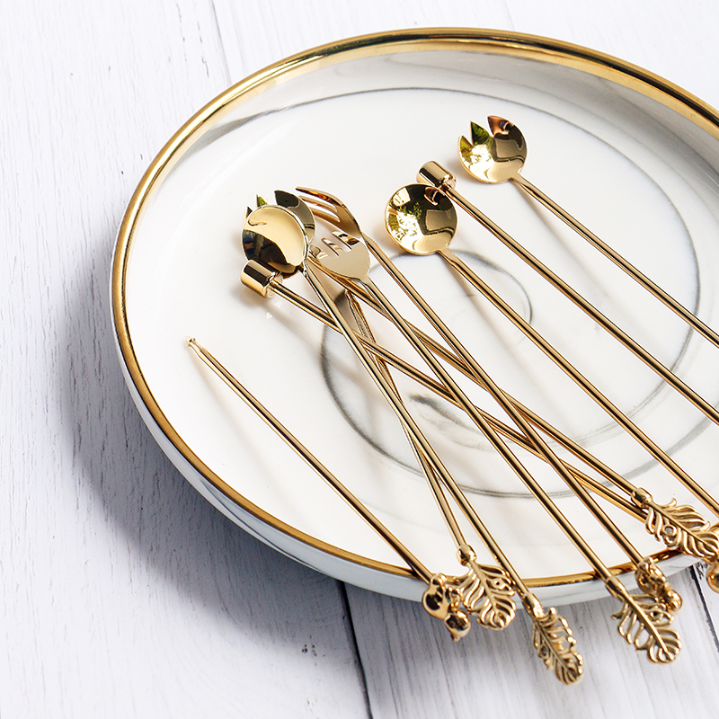 Mino Nordic stainless steel creative coffee stir bar leaf koala shape long handle spoon fruit stick heart fork