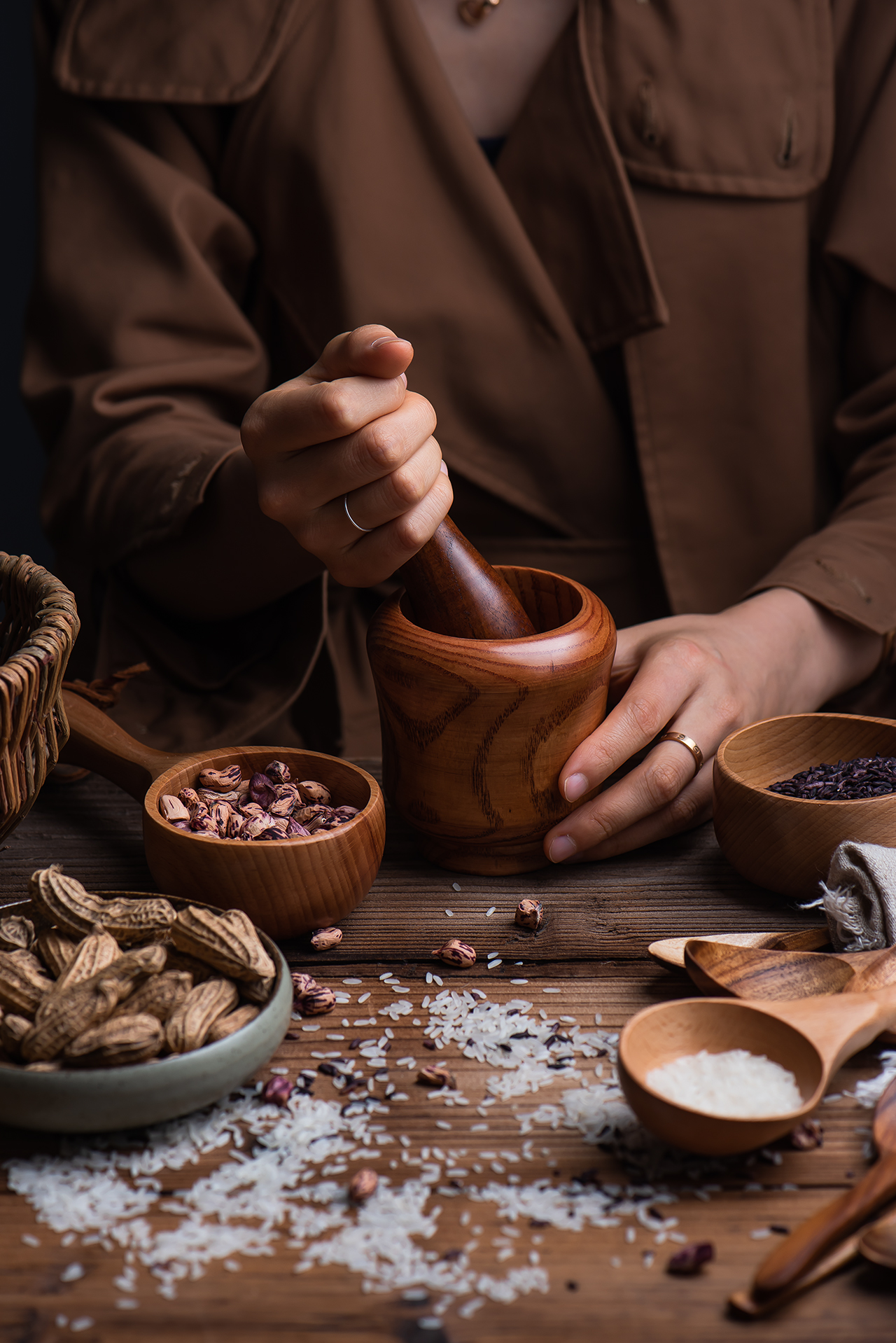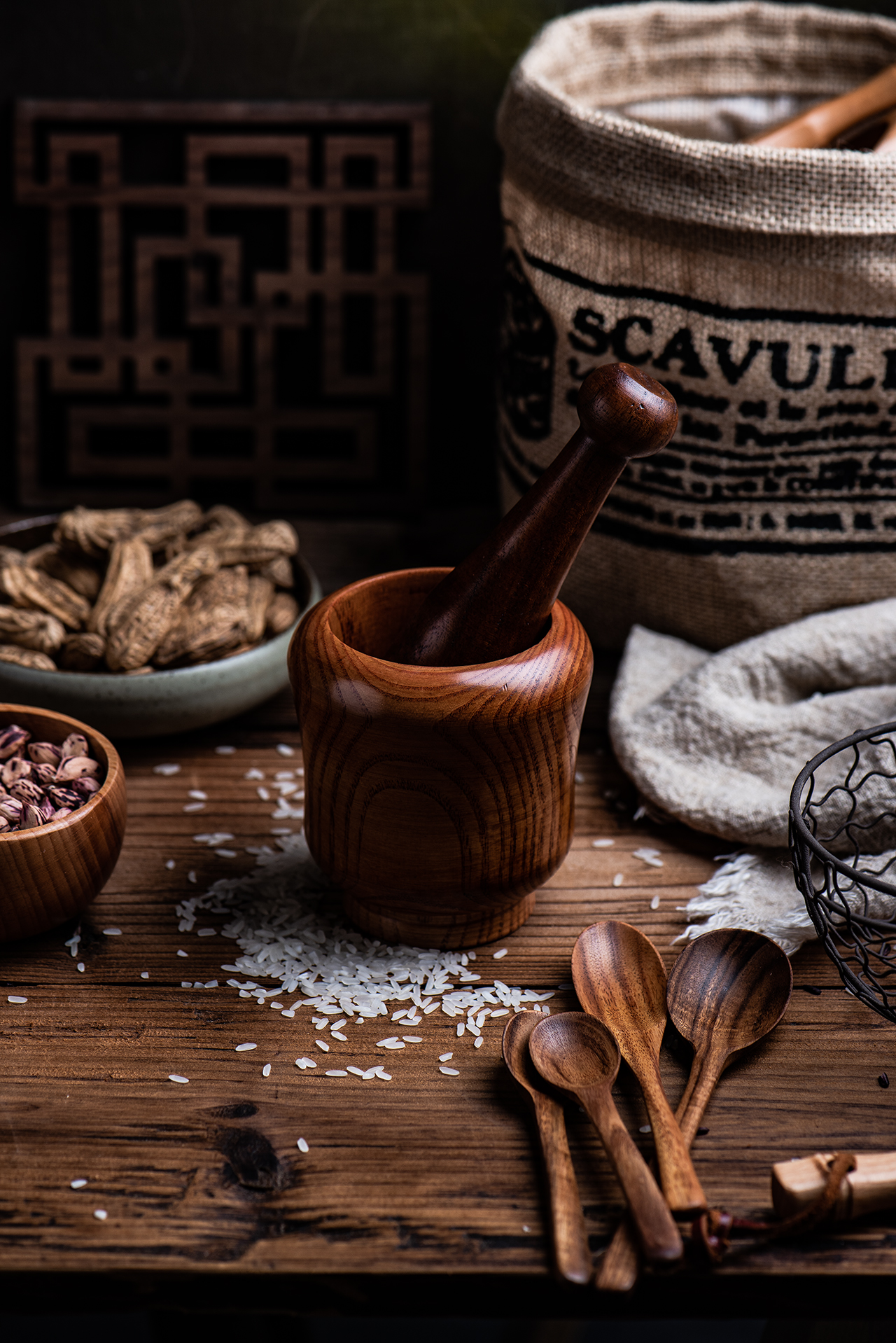 Retro Log Home Mashing Machine Mashing Garlic Grinding Machine Manual Ring Bowl Gourmet Food Photography Retro Swing Piece