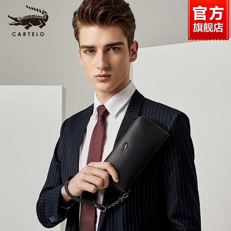 Crocodile Men's Wallet Long Version Genuine Leather Laced Handbag Business Money Clip Hand Grab Bag Cow Leather Youth Tide Leather Clip Men's Bag