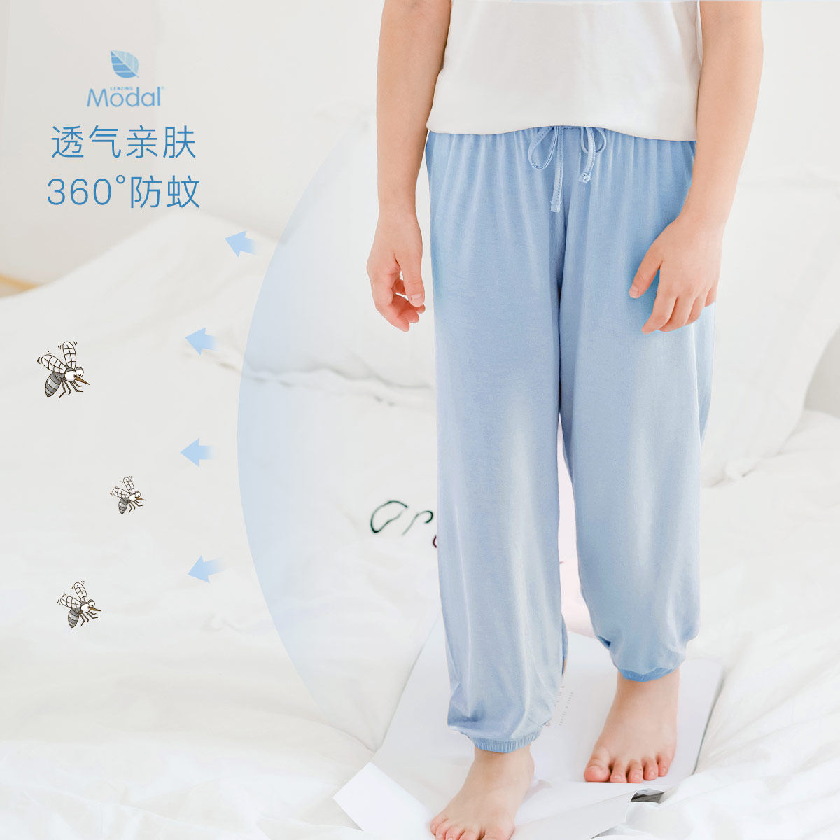Children Anti-mosquito Pants Modale Cotton Summer Long Pants Thin girl Sleeping Pants Boy Boy Boy Light Cage Pants Home Pants