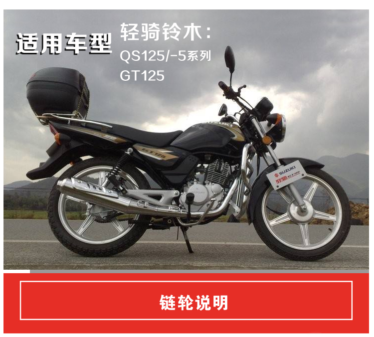 Qingqi Suzuki Junchi GT125 chain QS125-5-A-B-CEF size sprocket Chain front and rear gear large sprocket