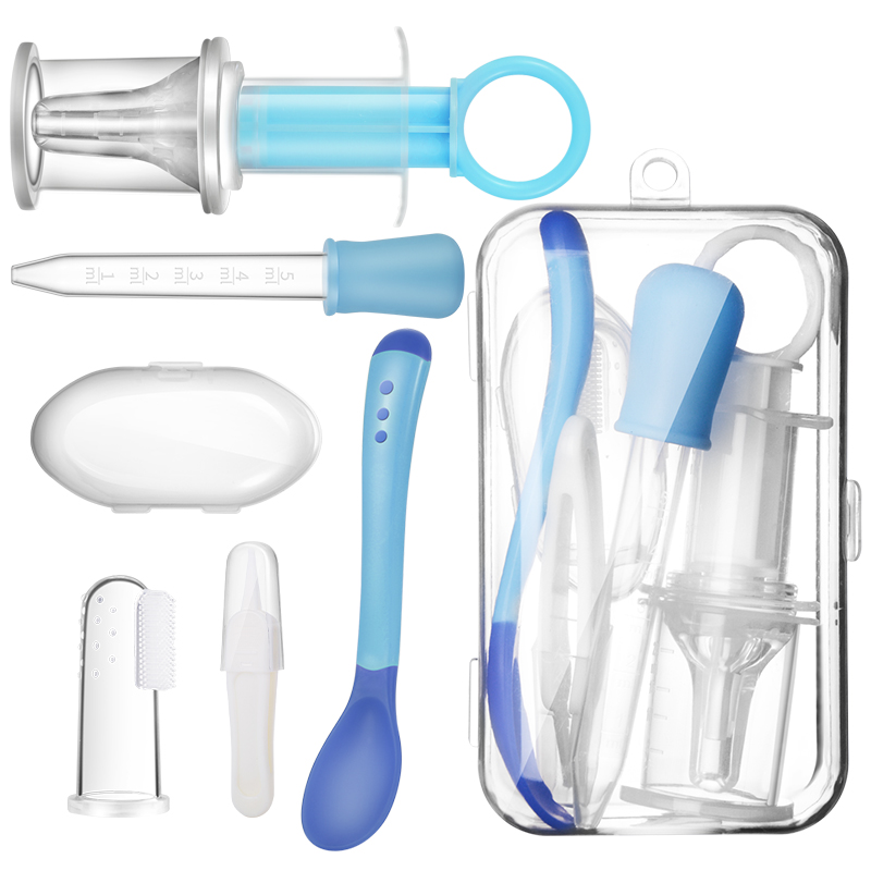 Blue feeding machine containing box pink feeding machine containing box transparent color feeding machine containing box blue 6 pieces of set feeding machine to catch a warm spoon drop tube nose poop nip box milk toothbrush big