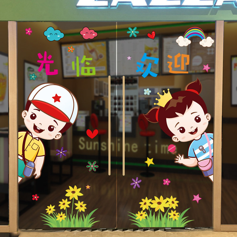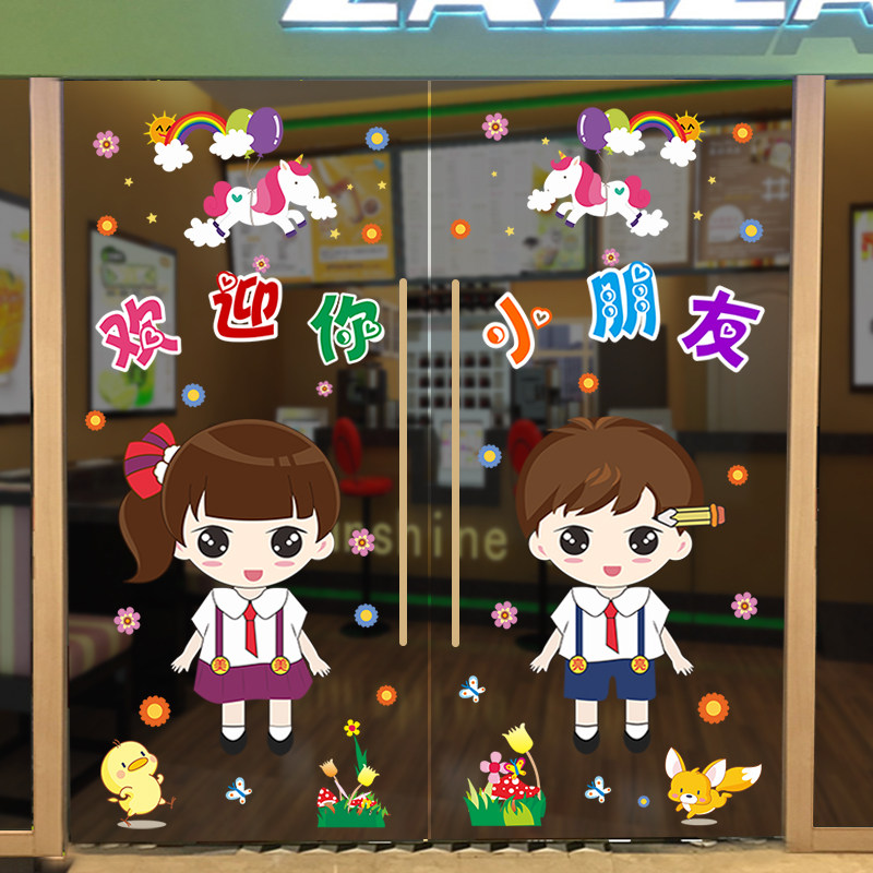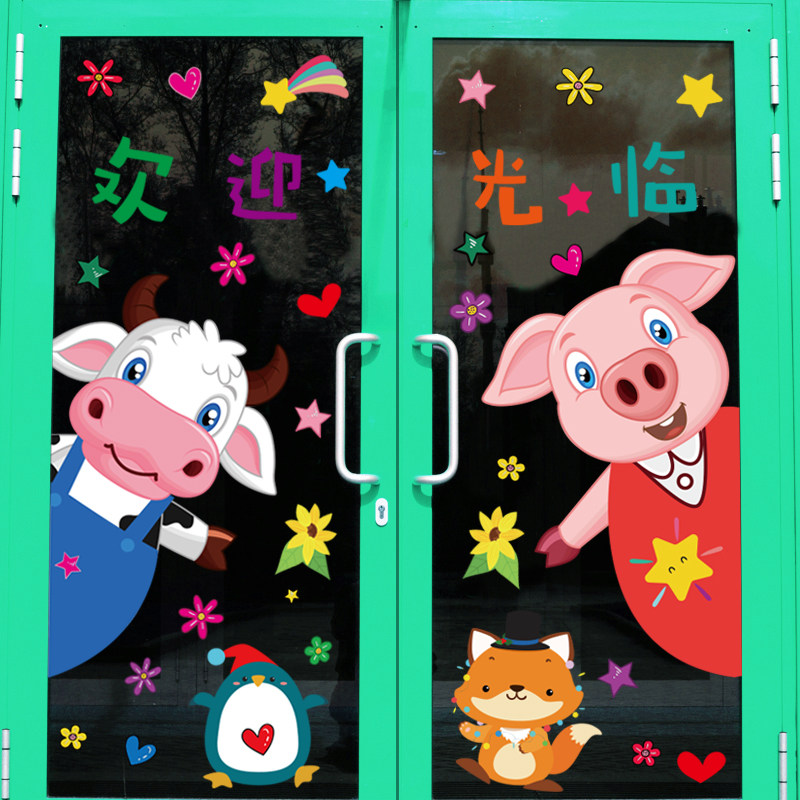 Cartoon Creativity Classroom Arrangement Double Sided No Glue Static Self-Stained Door Glass Sticker Window Sticker Window Adorable Door And Window Sticker