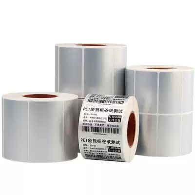 PET silver paper self-adhesive label paper 20-60mm * 50x40 30 35 25 15 10 8 matte silver paper ribbon barcode printer fixed asset blank sticker
