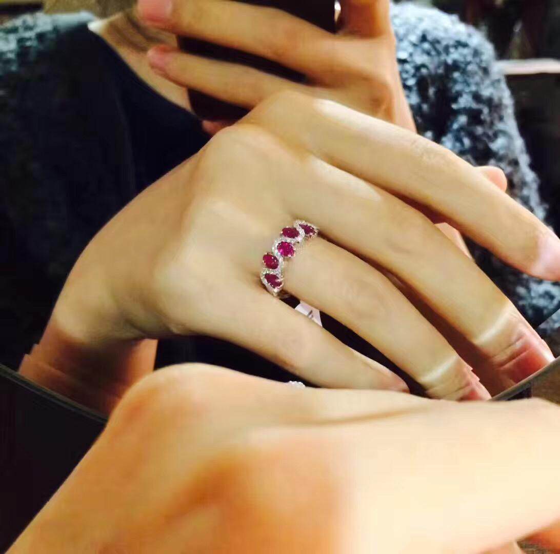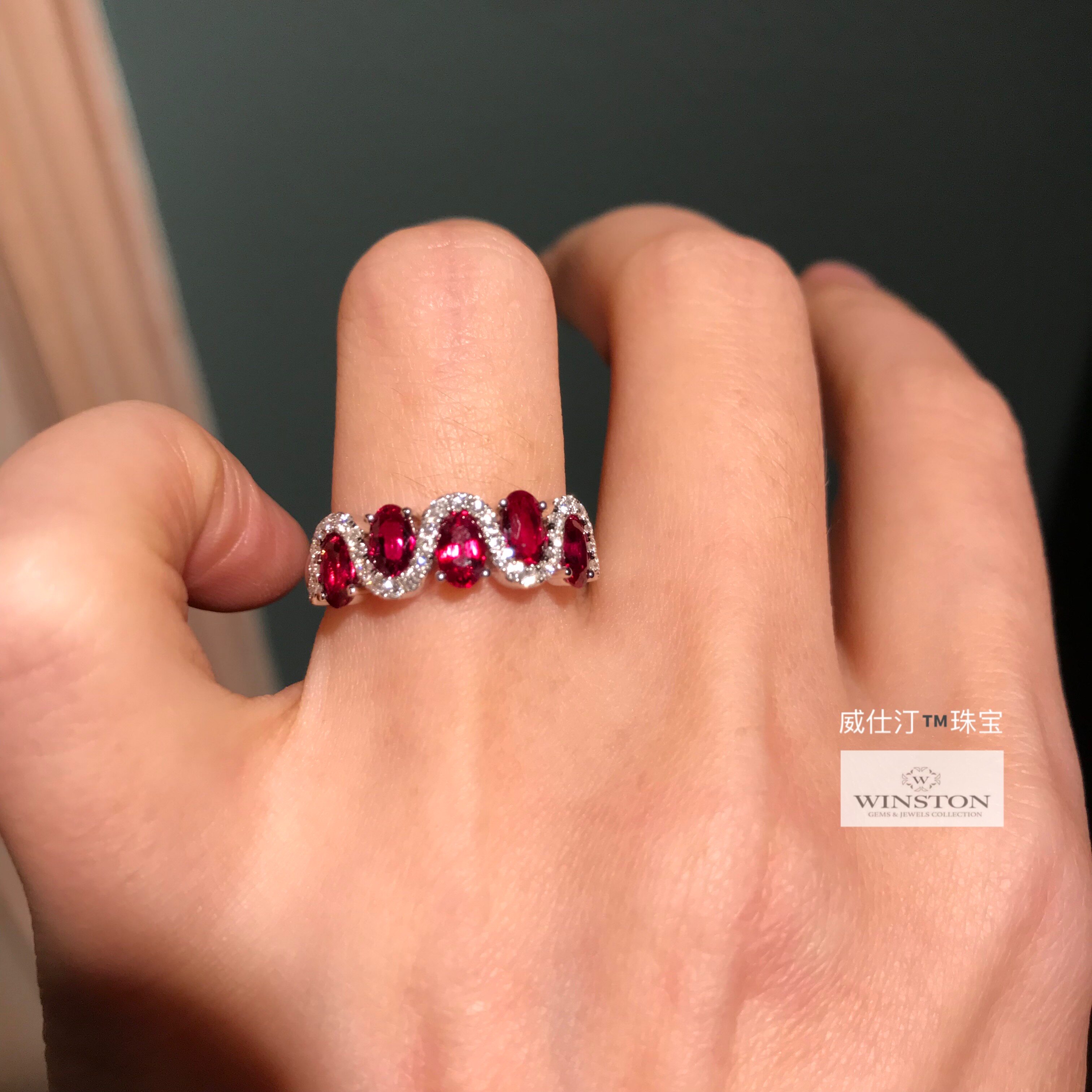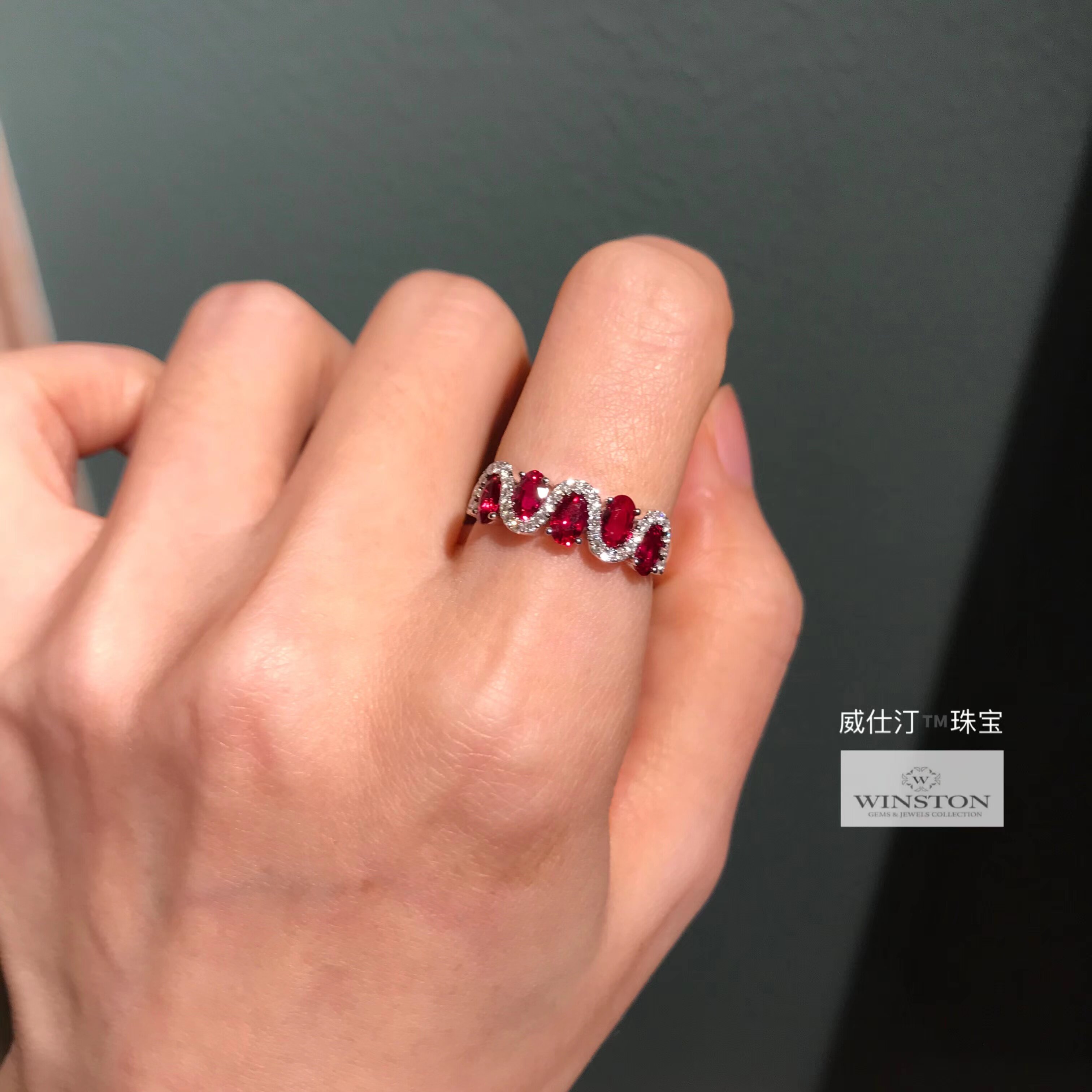 (Winston) American Lean Oval with Strict Selection Dove Blood Red Ruby Diamond Wave 18k Gold Ring