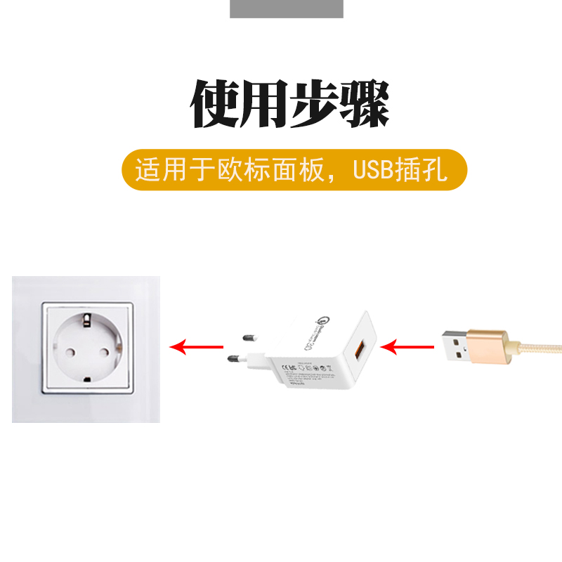 Multifunctional travel abroad round foot European standard conversion plug QC3.0A fast charge mobile phone charger Nordic France