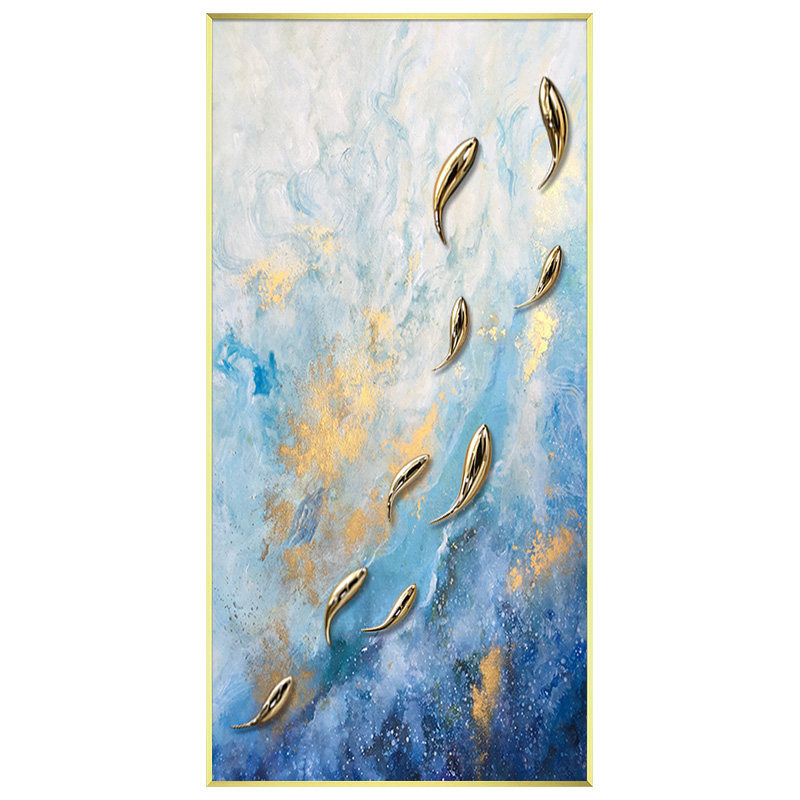 Hand painted oil painting Paintings Finance Nine Fish Tuxuan Guan Decoration Painting Vertical Version Light Extravagant High-end Entrance Modern Minimalist Hang Painting