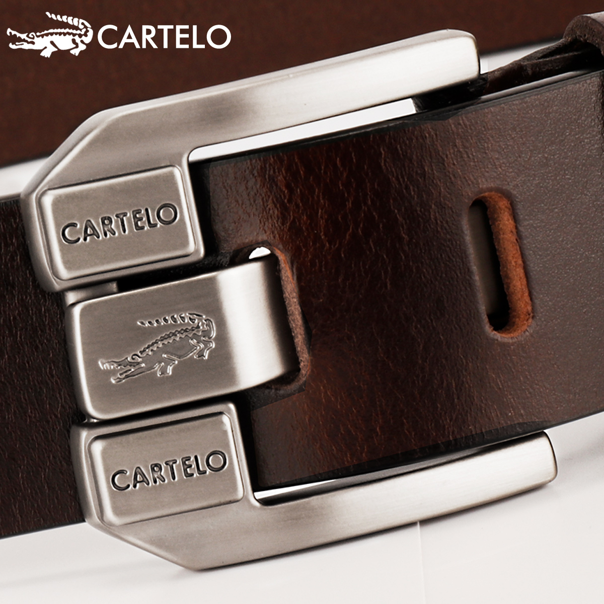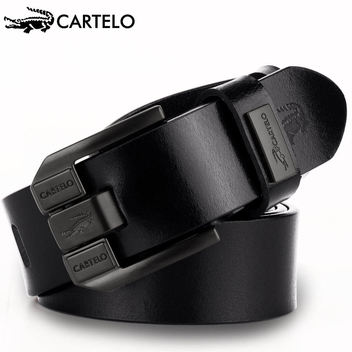 Cartelo crocodile belt men's pin buckle pure top layer cowhide retro trousers belt for young and middle-aged Korean version genuine leather