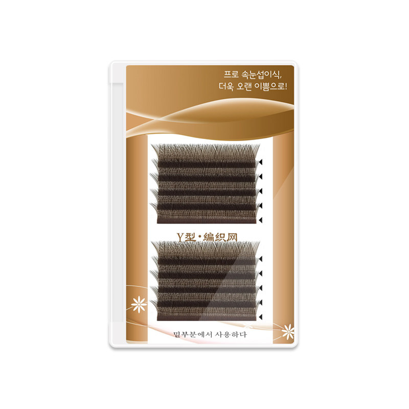 Y-type C warped caramel color love net woven eyelashes grafting in one second cross-flowering planting false eyelashes without roots