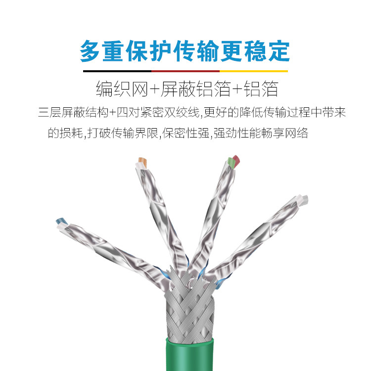 Oxygen-free Pure Copper Seven Type Network Route 10,000 trillion Network Card Router Connection one thousand trillion Home Double Screen Blinding CAT7 Class Crystal Head