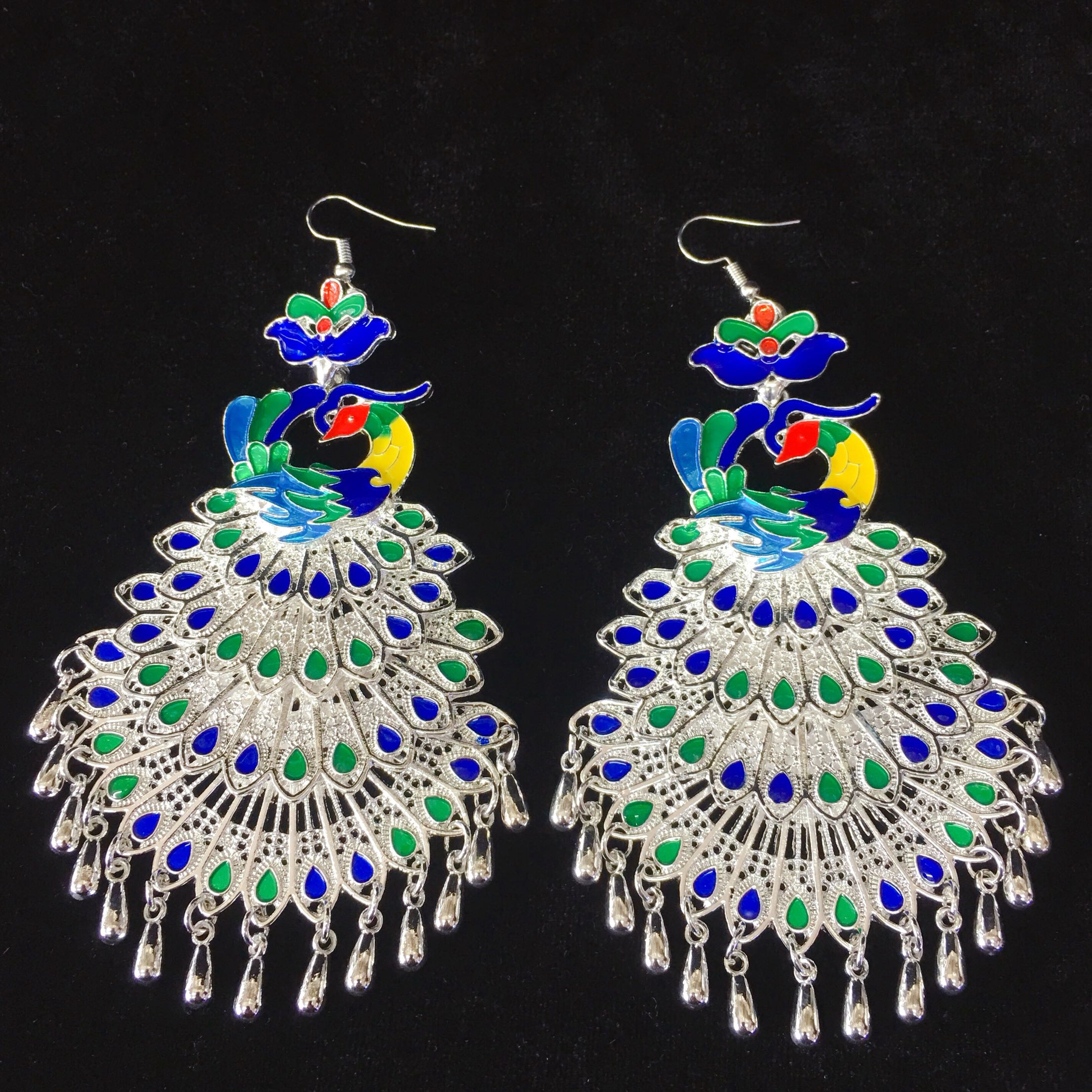 Guizhou Miao Miao Silver Earrings Ancient Costume Exaggerated Large Butterfly Peacock Earrings Net Red Bride Ethnic Style Earrings Female