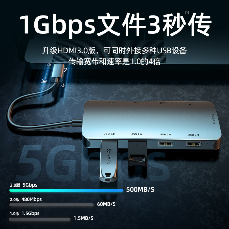 6 in 1 (USB3 0*3 HDML Gigabit LAN PD charging) 7 in 1 (USB3 0*2 HDML SD card TF card reader Gigabit network