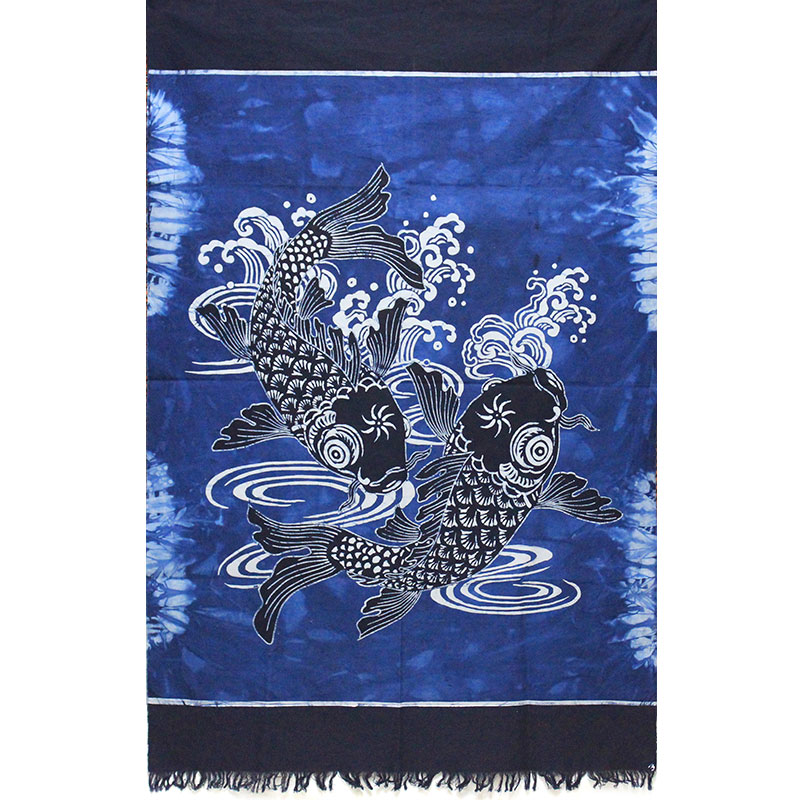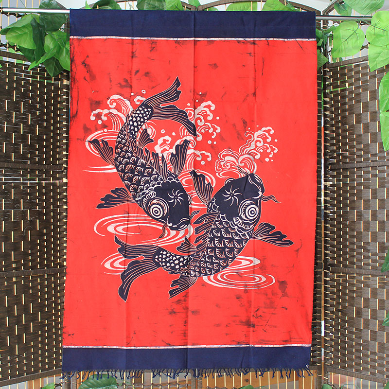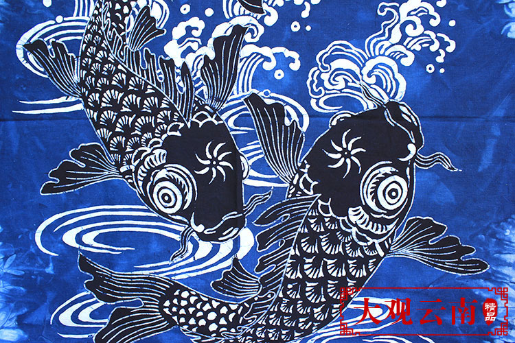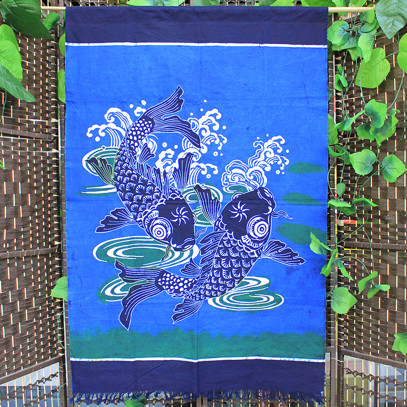 Wax-dyed painting double fish Yunnan specialities National handmade cotton cloth hanging painting cloth art door curtain Xuanguan toilet partition decoration-Taobao