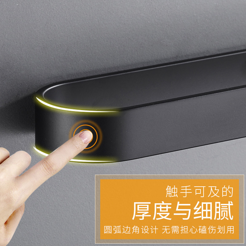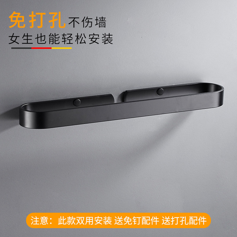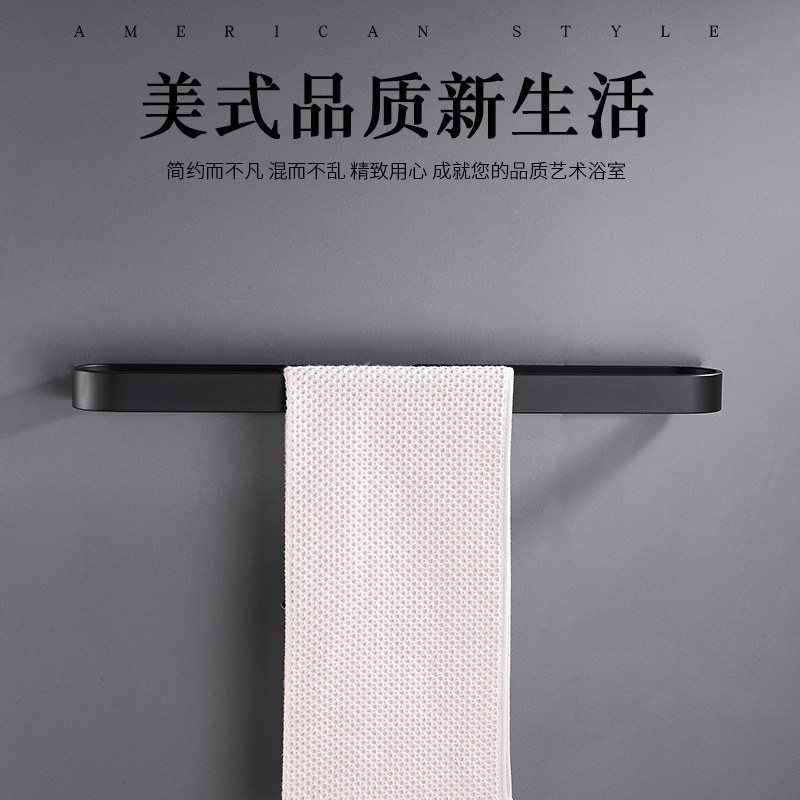 Powder room black towel rack single-rod bathroom pendant Nordic towel rod punch-free towel ring rack hanging rod wall hanging