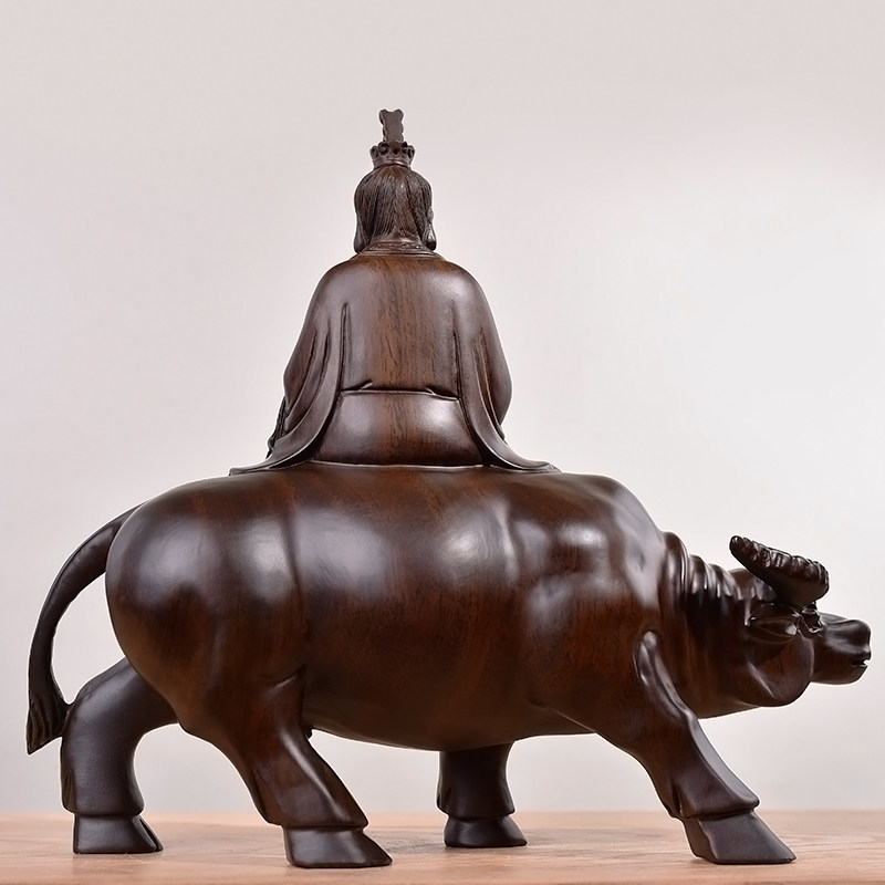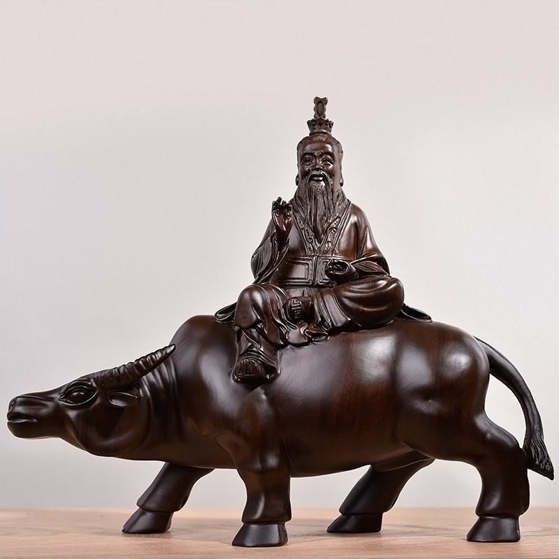 Wood carving Taishang Laojun God Statue Ornament Ebony Solid Wood Carving Immortal Home Worship Feng Shui Decoration