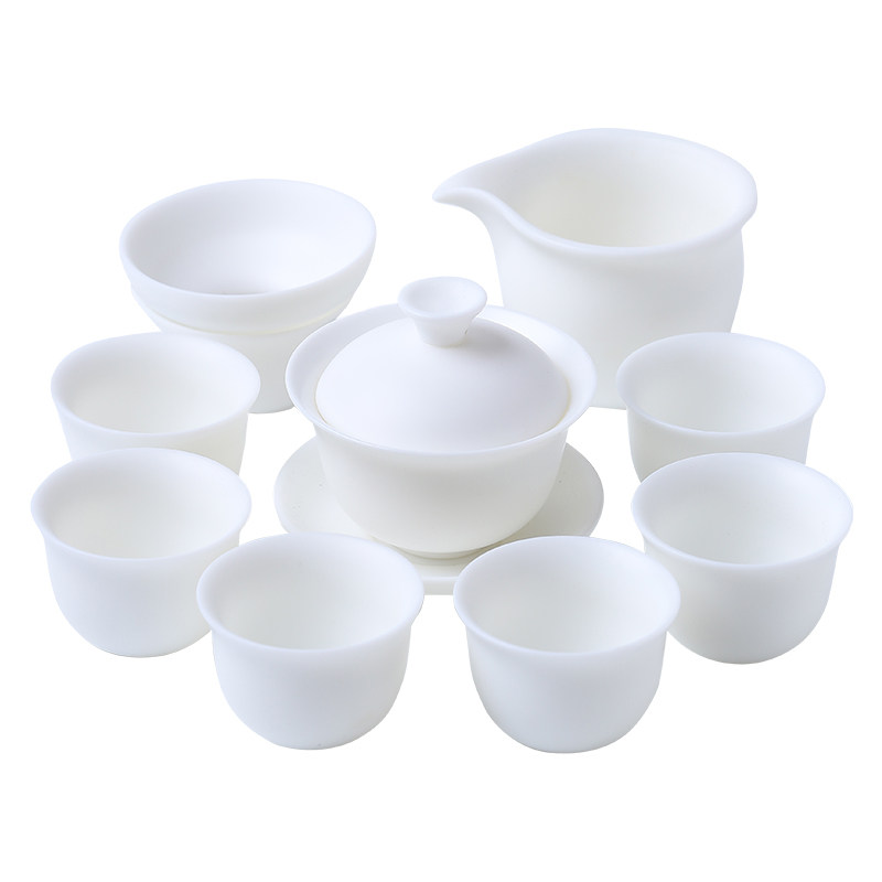 Inexplician Sky Scented White Porcelain Cover Bowl Tea Set Group Defied Goat Fat Jade Porcelain Home Brief Kung-fu Tea Cup Gift Box Dress