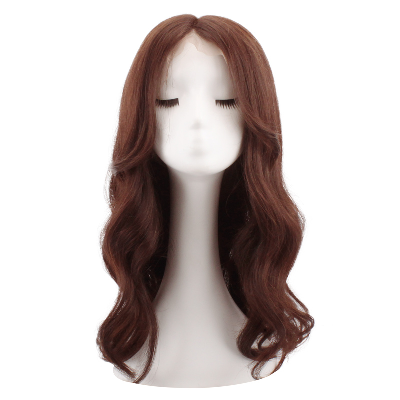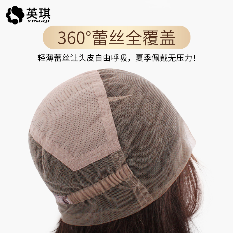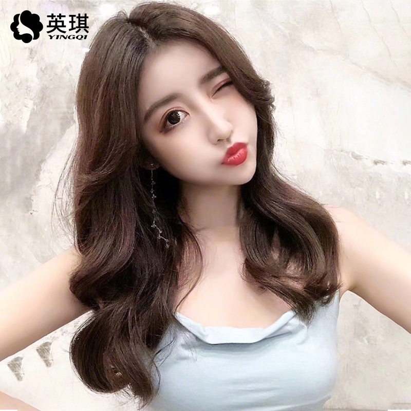 Wig women's long curly hair net red big wave lace natural full hood real hair fashion eight-character Liuhai wig