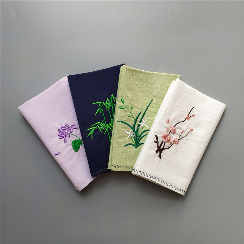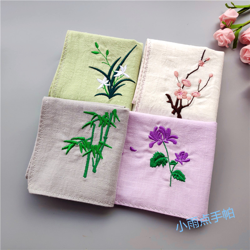 Ancient Style Embroidered Handkerchief Female Plum Orchid Bamboo Chrysanthemum Retro Embroidered Handkerchief Sweat-absorbing Square Scarf Chinese Style Cotton Linen Handkerchief Male