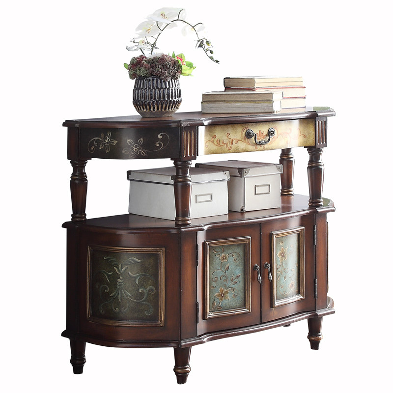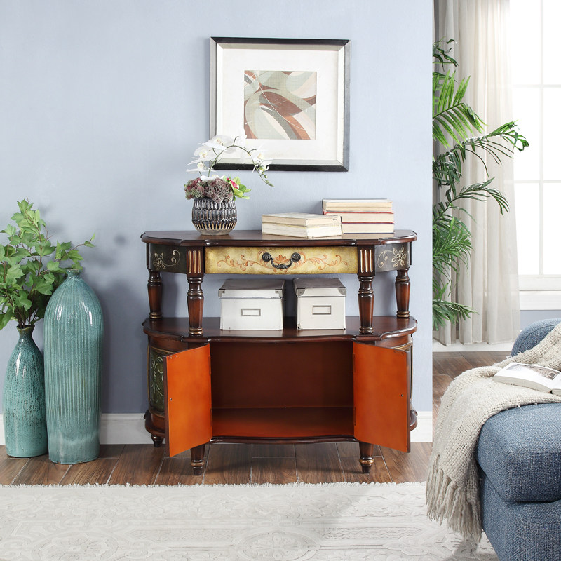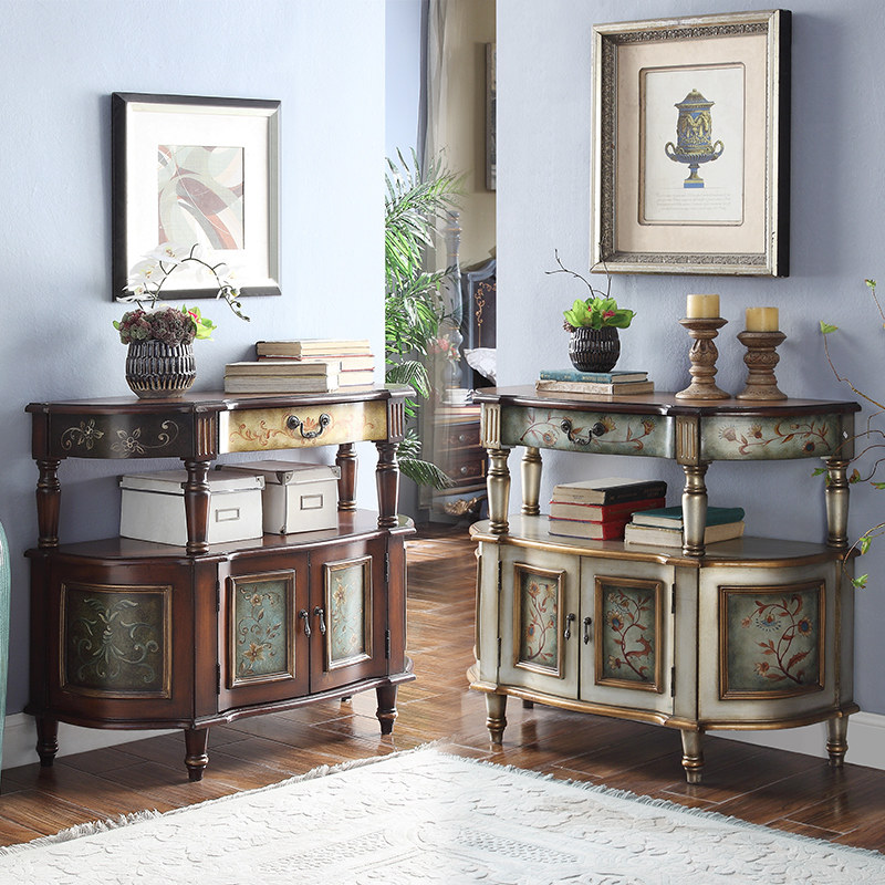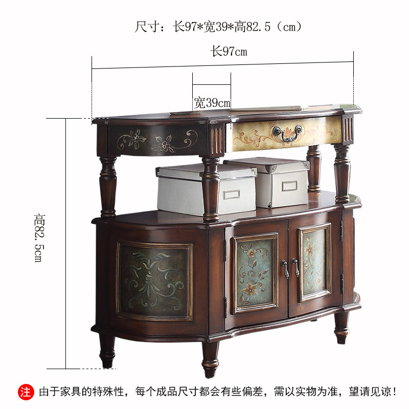 Semicircle porch cabinet American country solid wood painted retro double-layer porch cabinet double doors with drawers living room bedroom cabinet