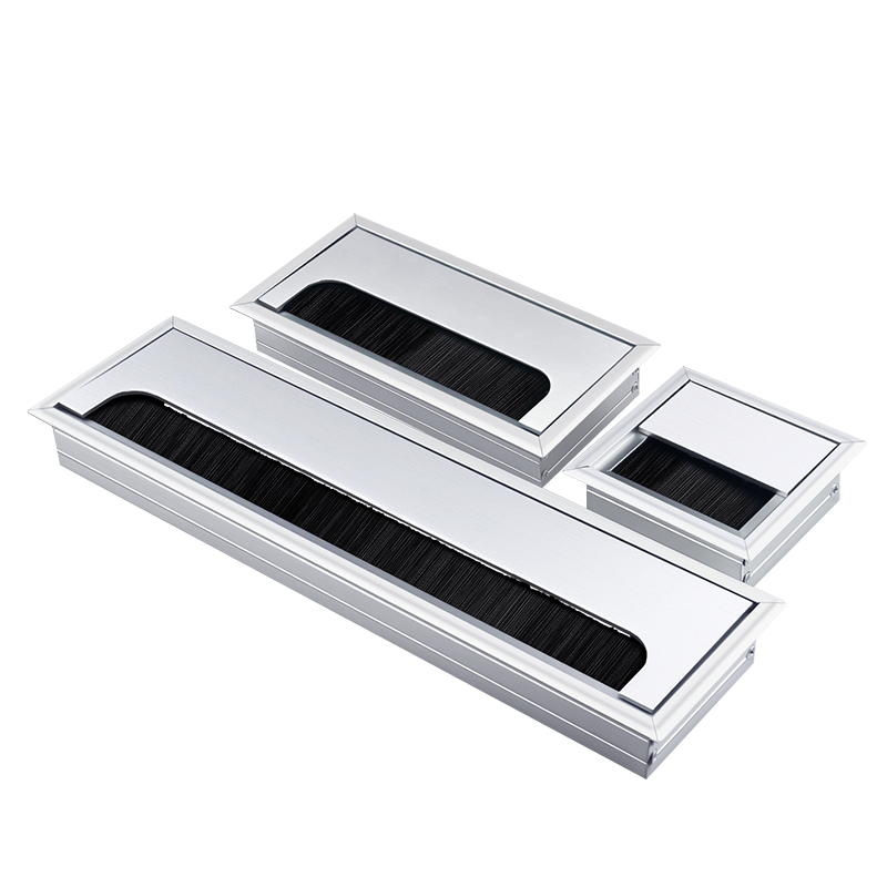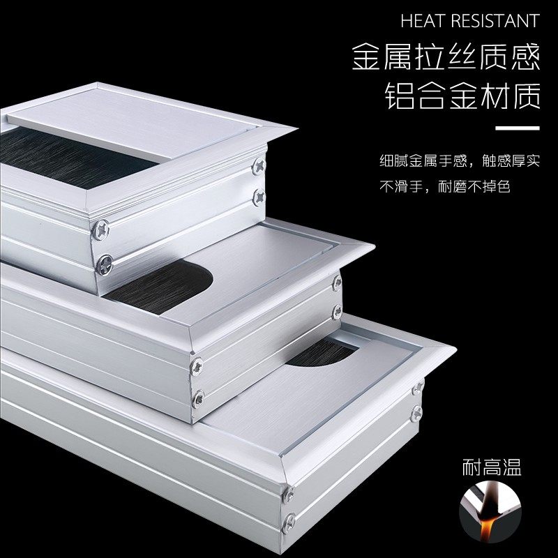 Desk Aluminum Alloy Hair Brush Wearing Wire Box Computer Desk Wire Hole Cover Tabletop Wire Hole Cover Rectangular Threading Hole Lid