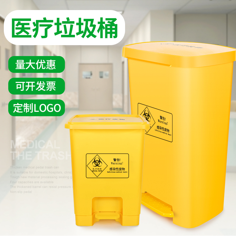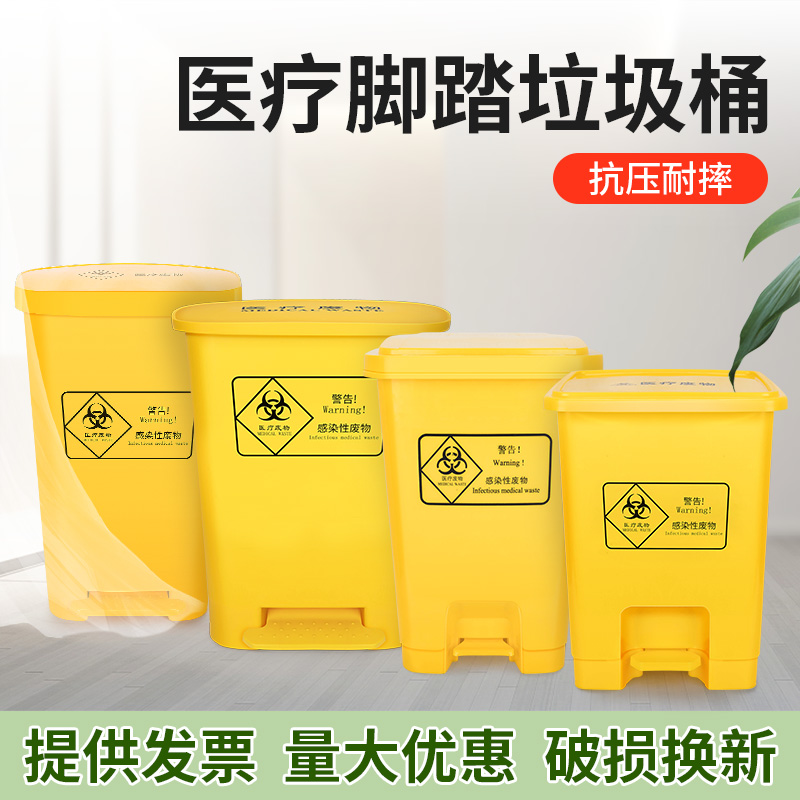 Medical trash can yellow clinic special hospital with large foot-operated kitchen waste bucket with lid outdoor foot pedal