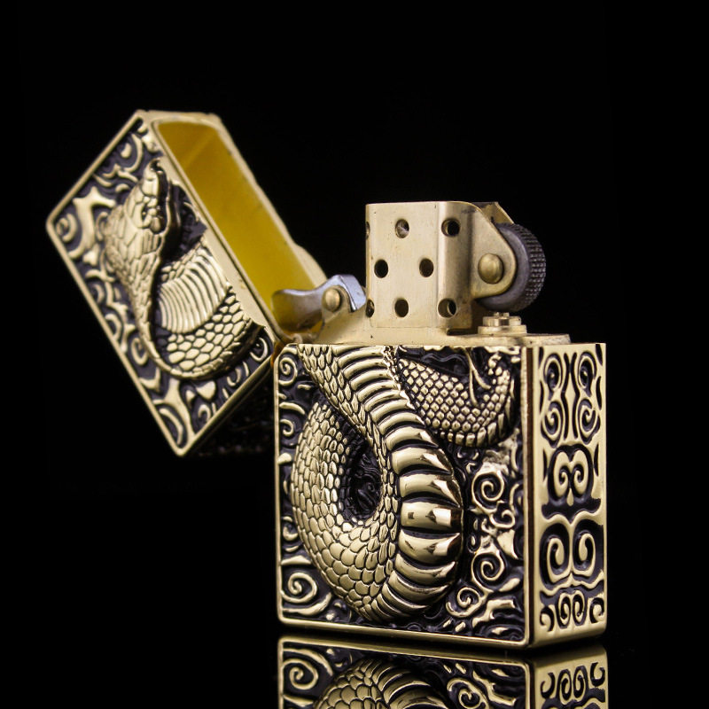 Sulow kerosene lighter ZORRO Heavy armor Snake King Pure Copper 5 Face Relief Engraving Windproof Retro Creative Personality