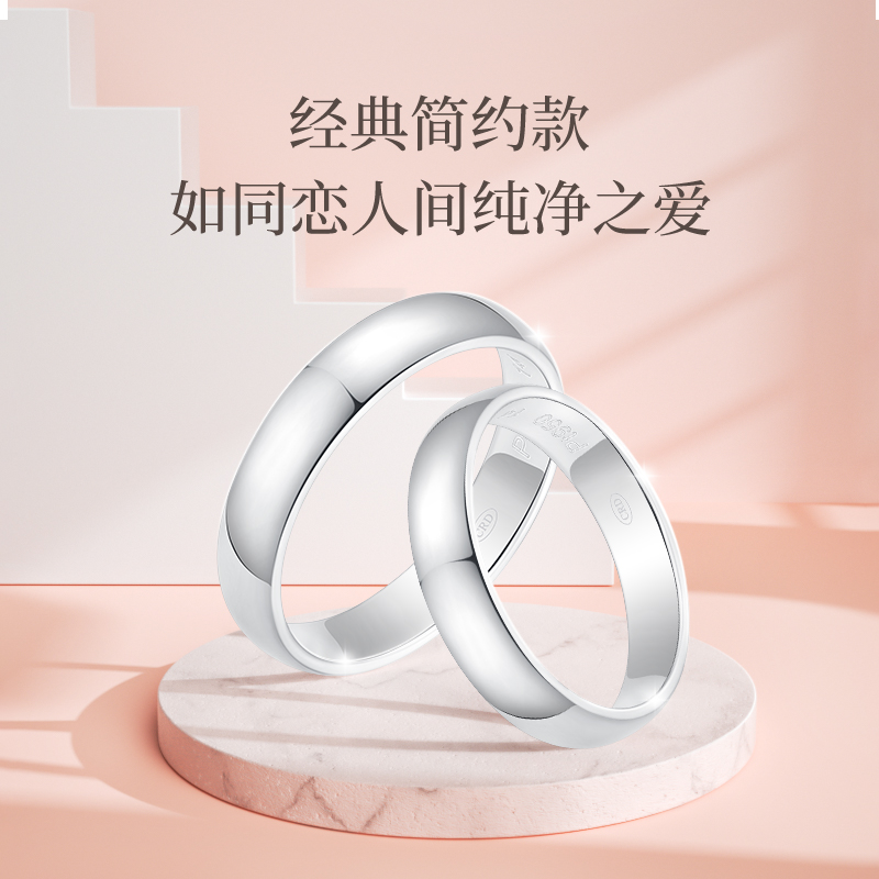CRD Claiti platinum couple wedding ring Simple glossy white gold proposal ring aperture male vegetarian ring