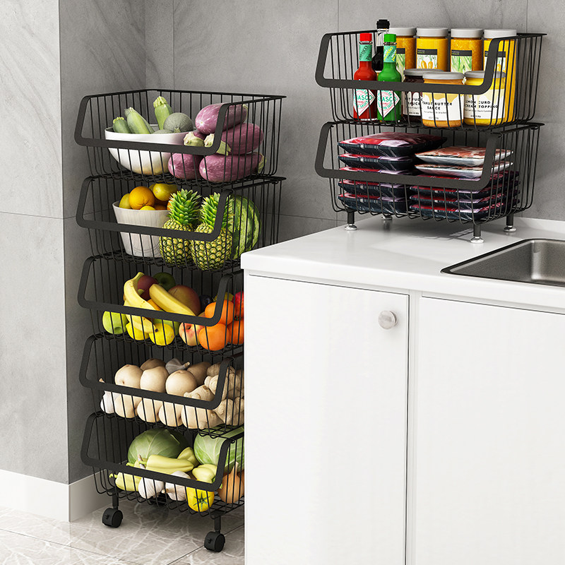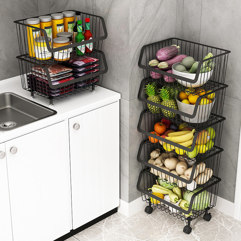 Black kitchen shelf floor vegetable collection layer multi-layer vegetable rack fruit collection basket household shelf