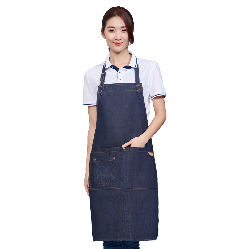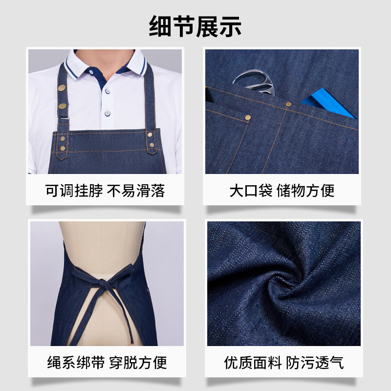 Denim Apron Custom Logo Print Character Han Edition Fashion Women's Milk Tea Shop Café Workwear to Thickened Wear