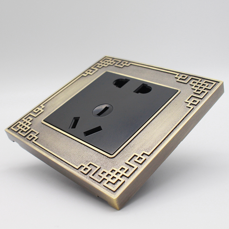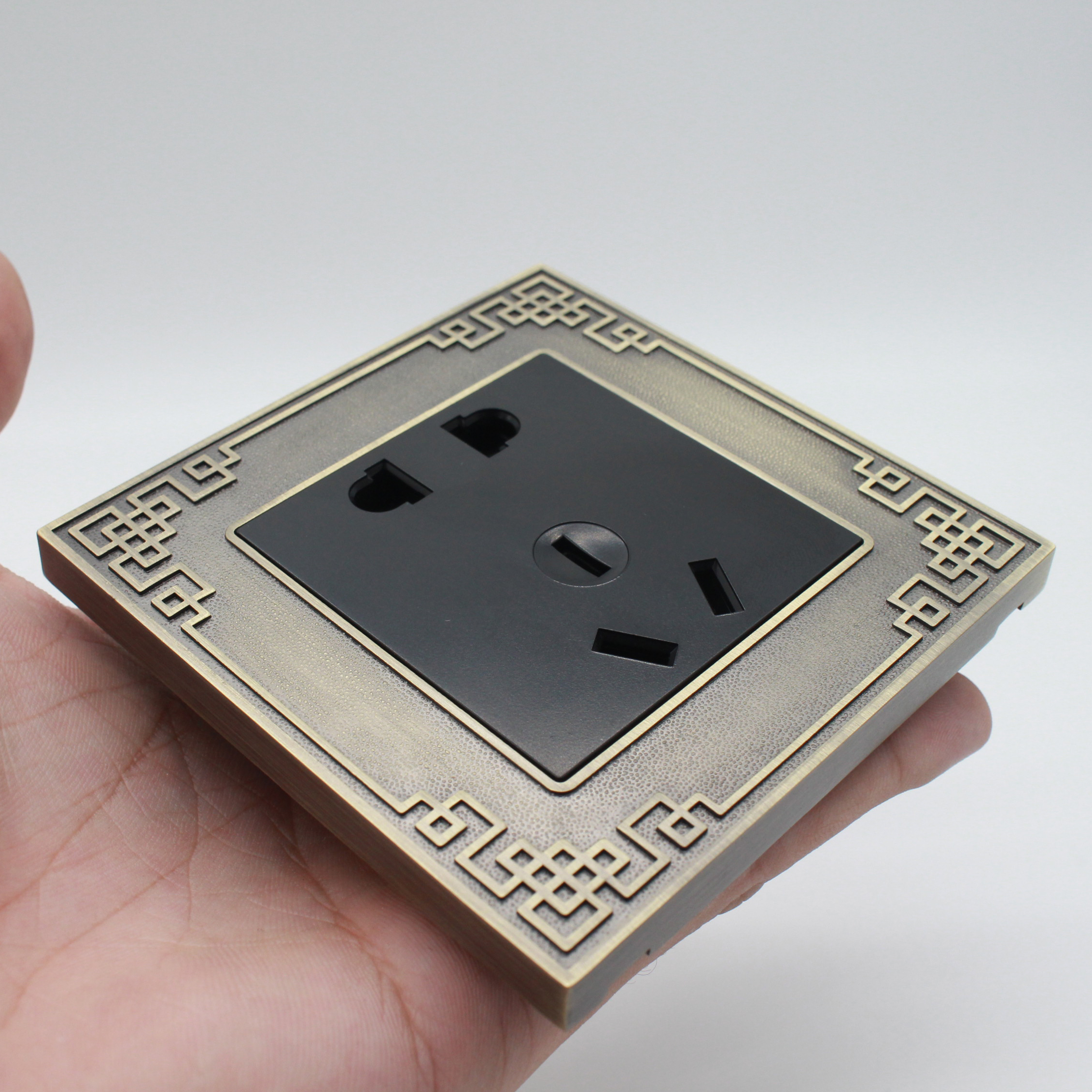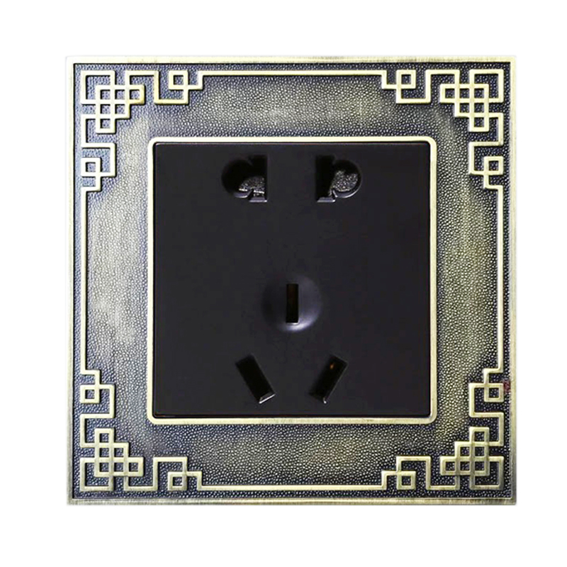 Pudiva New Chinese style Chinese Wind Villa Light Extravagant METAL GREEN ANCIENT BRONZE CLASSICAL PATTERN FIVE-HOLE POWER SOCKET