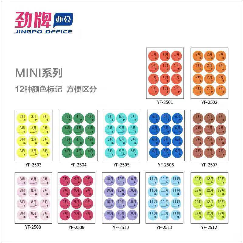 Stiffness Round Month Label 25mm Month Sticker 1-12 Month Classified Label Month Quarterly Label Sticker