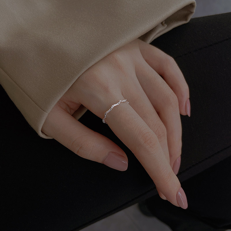 925 pure silver ring female wavy line celibic unbridal tail ring South Korea personality fine index finger joint ring opening
