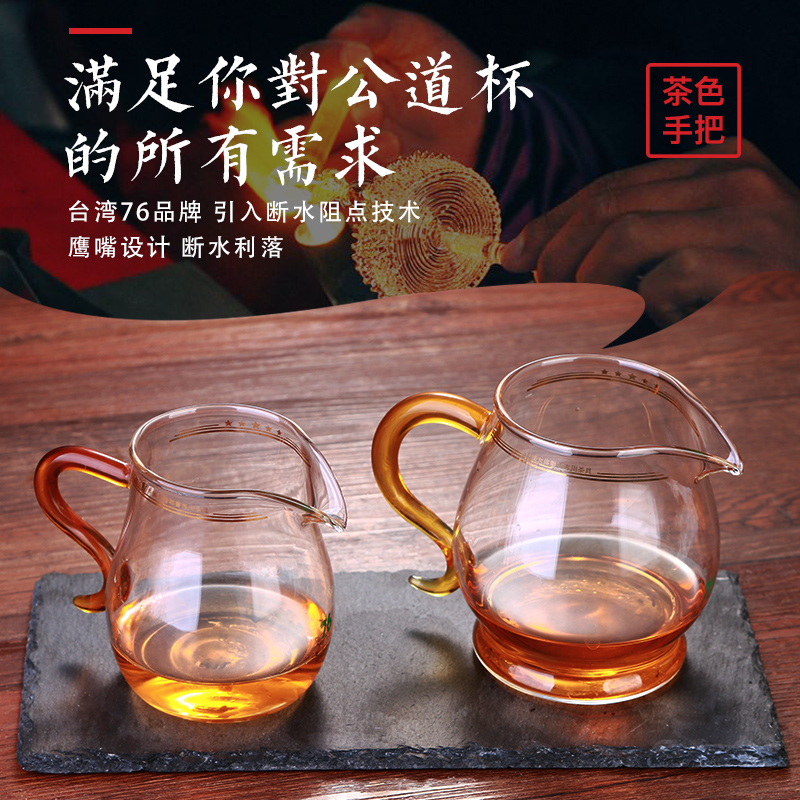 Taiwan 76 heat-resistant glass eagle mouth fair cup tea hand handle tea dispenser with tea leak set household work cup tea set