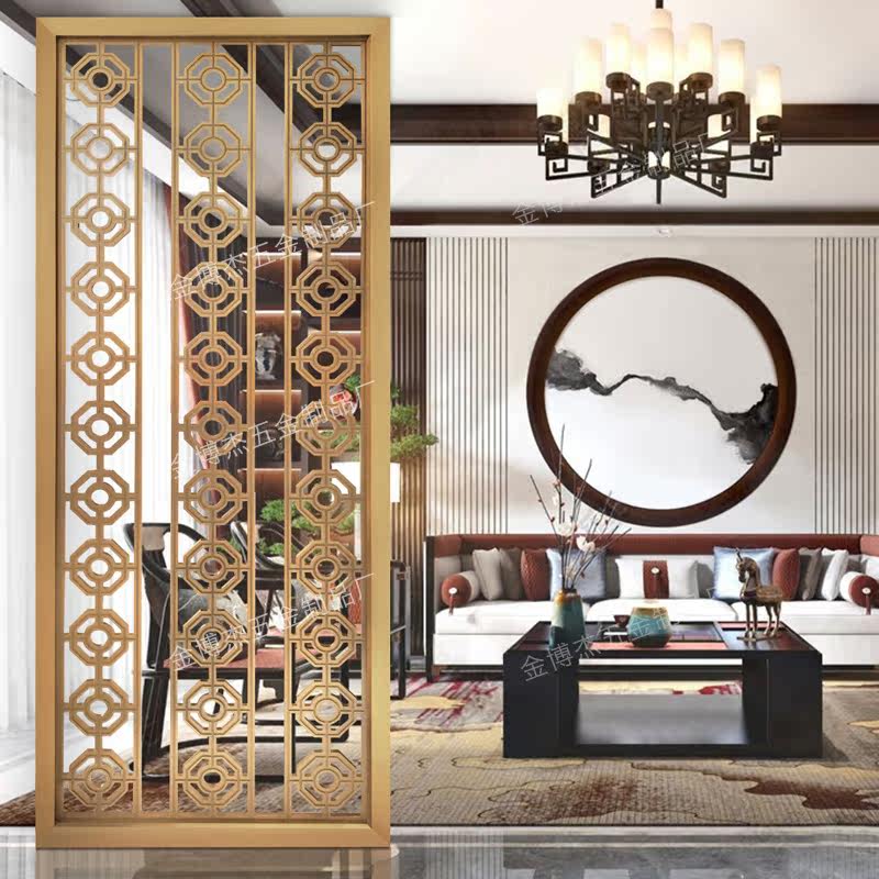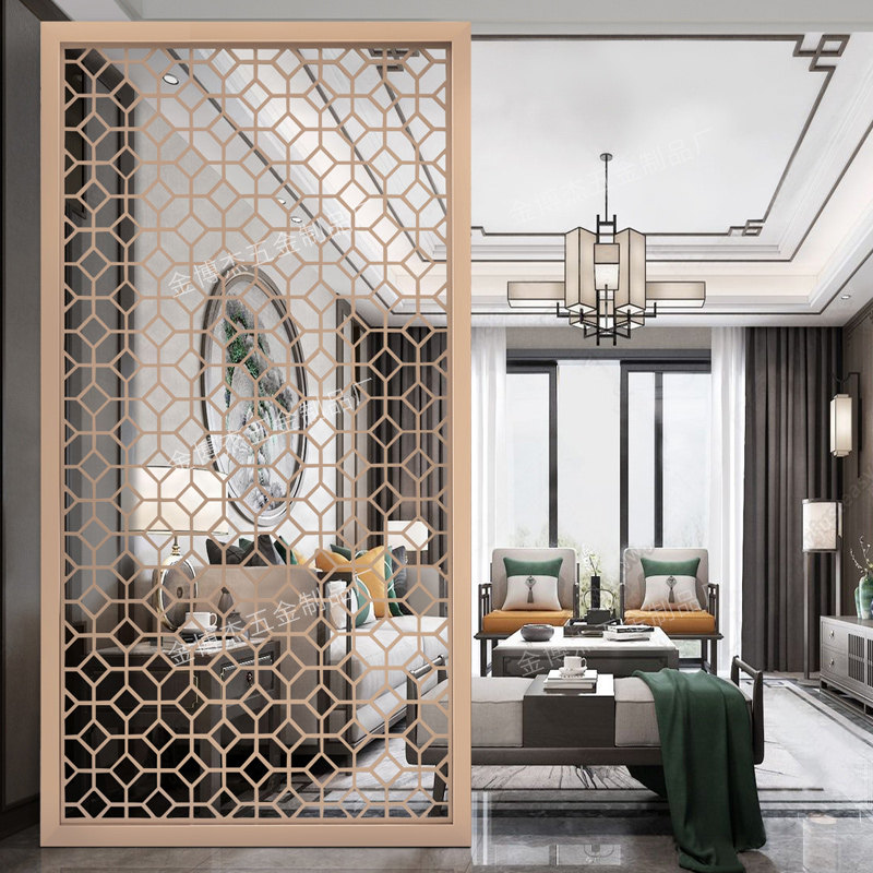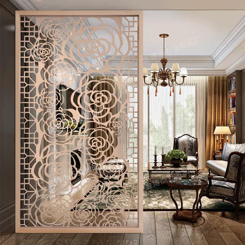 Stainless steel screen partition Light luxury titanium alloy living room simple hollow carved rose gold Chinese metal entrance customization