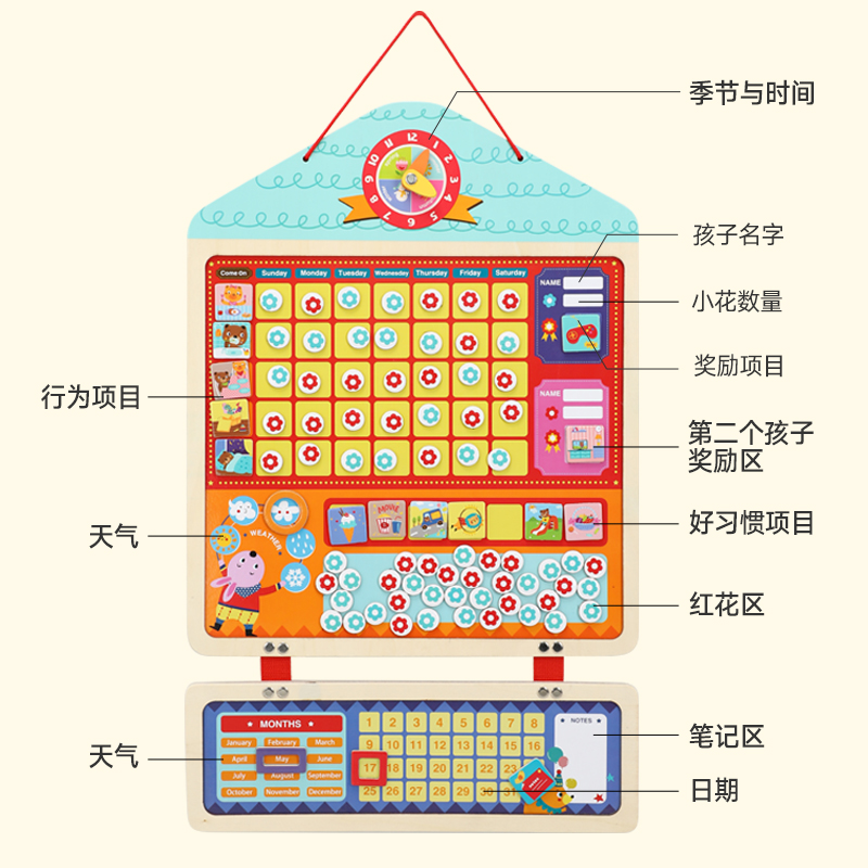 Children Early Education Growth Self-discipline Table Learning Program Recording plate stickers Magnetic small red flowers Reward Students Kindergarten-Taobao