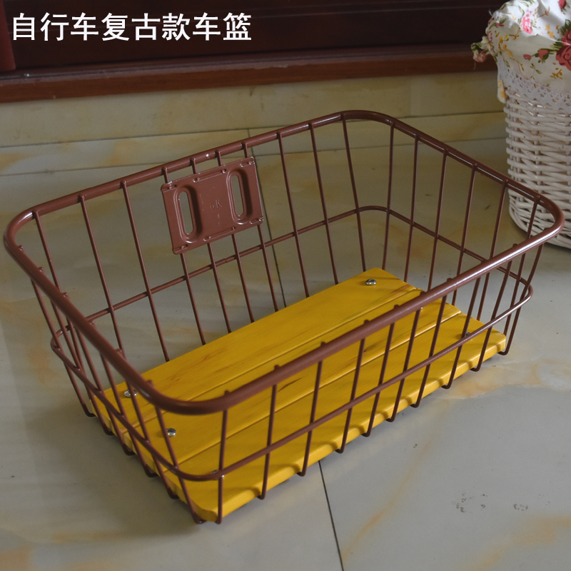 Bicycle electric scooter retro car basket basket brown coffee color plastic wood wire Dutch Japanese and Korean style