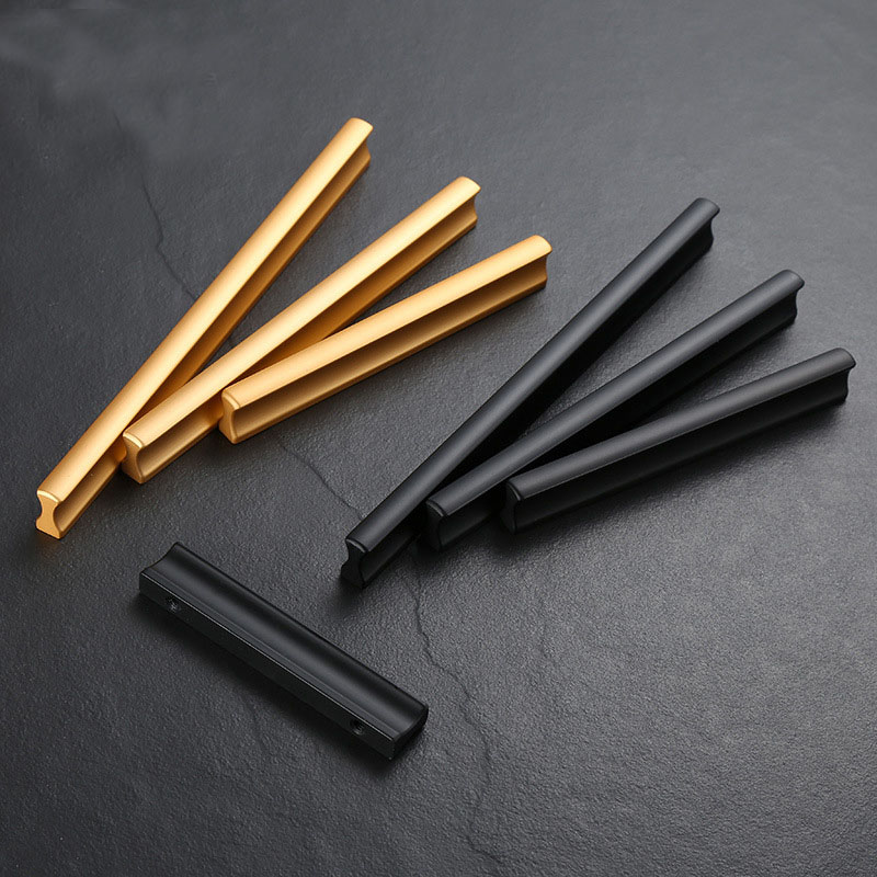 Hole distance 64 96 128 160 US black gold one-font drawer handle closet cabinet aluminum alloy door handle