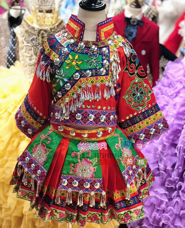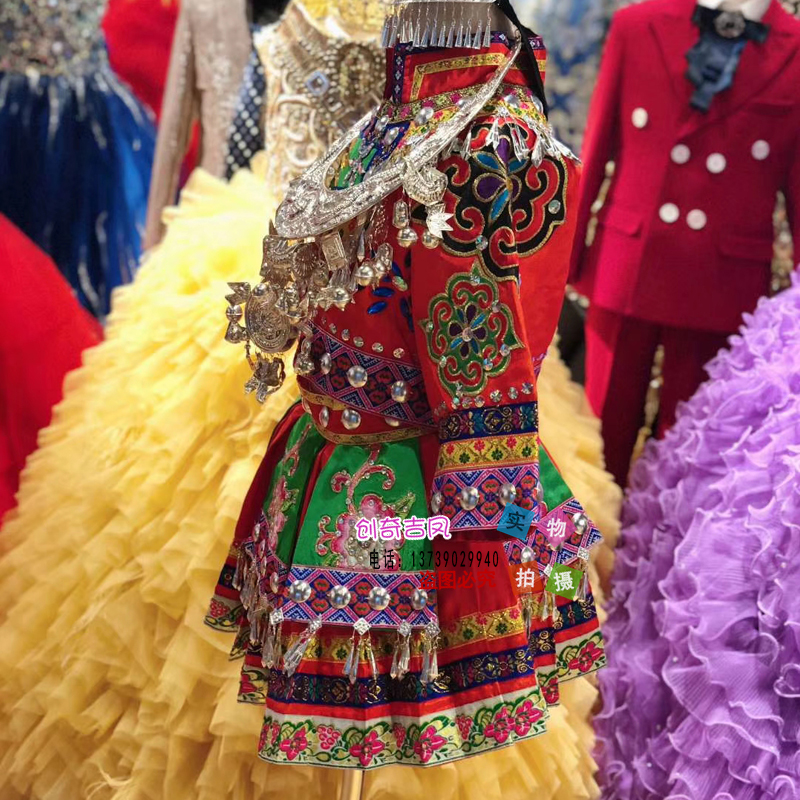 New girls Miao solo clothing Tujia fashion stage outfit Ethnic minority happy sunshine dance clothing