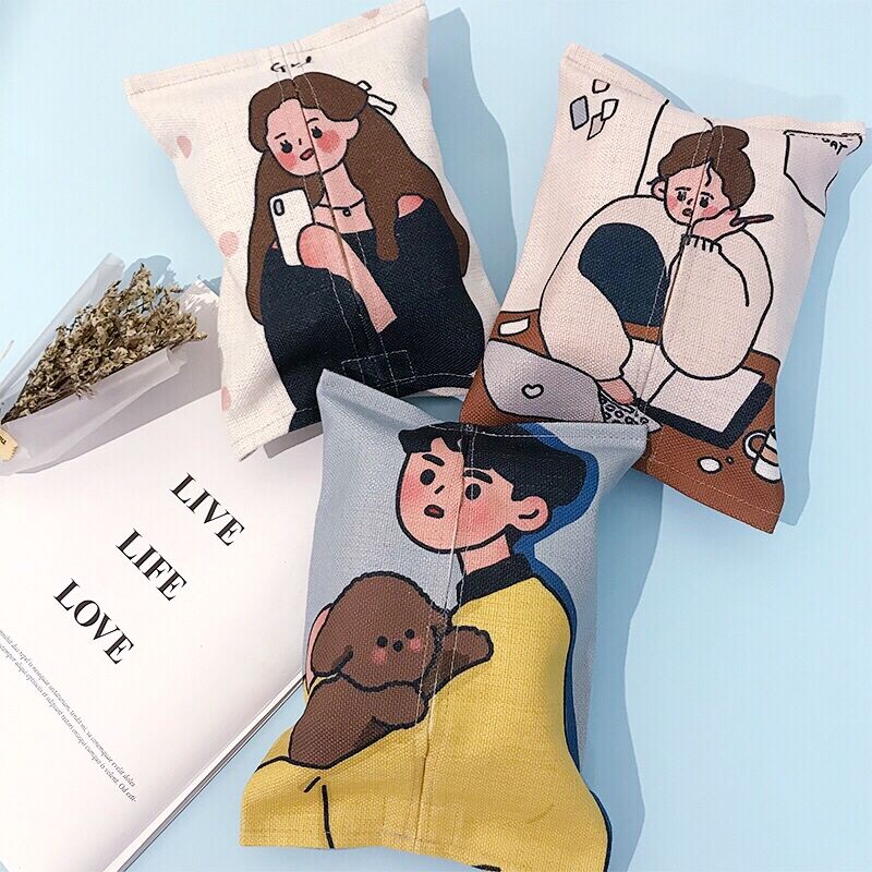 Korea mini illust cotton and linen cloth art ins popular toilet paper box household tissue bag office removable toilet paper bag
