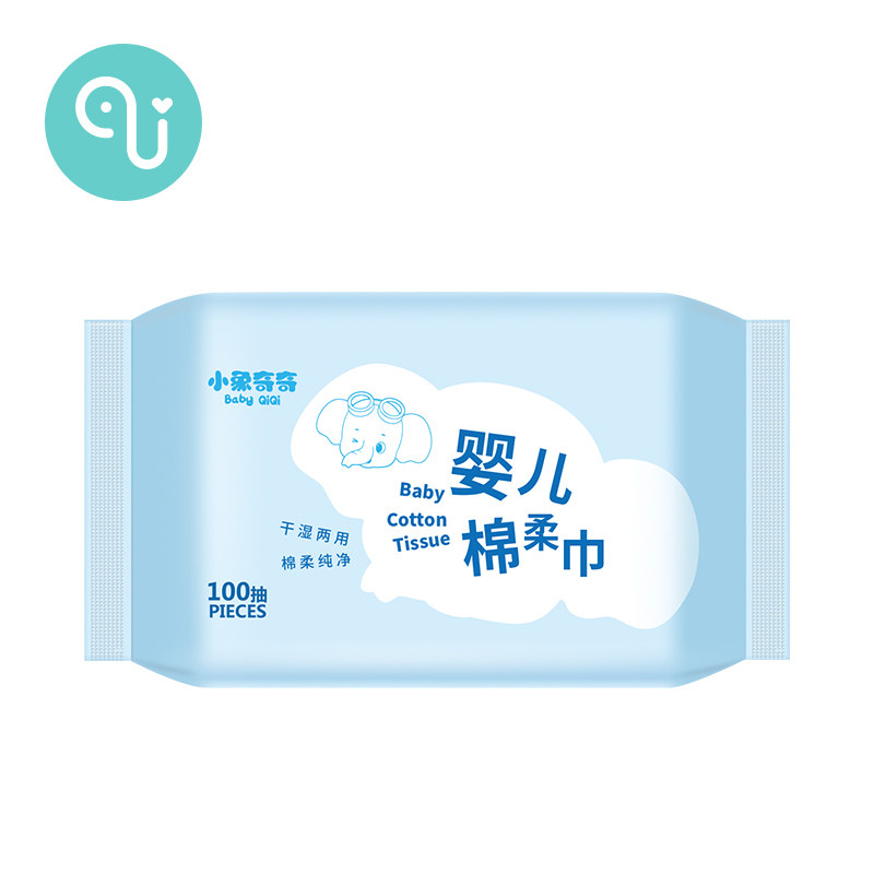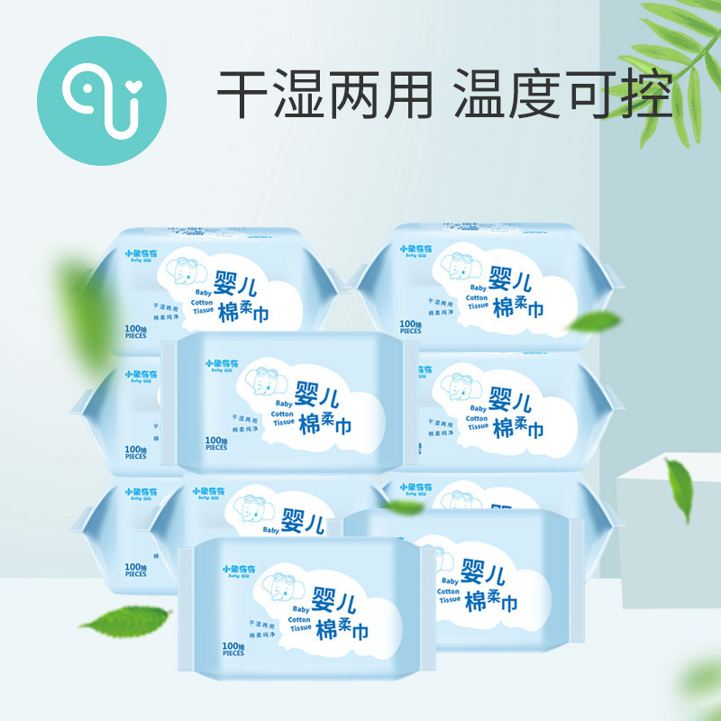 Baby Elephant Kiki baby cotton soft towel Dry and wet dual-use towel Baby hand and mouth fart face non-wet paper towel 100 pumping 10 packs