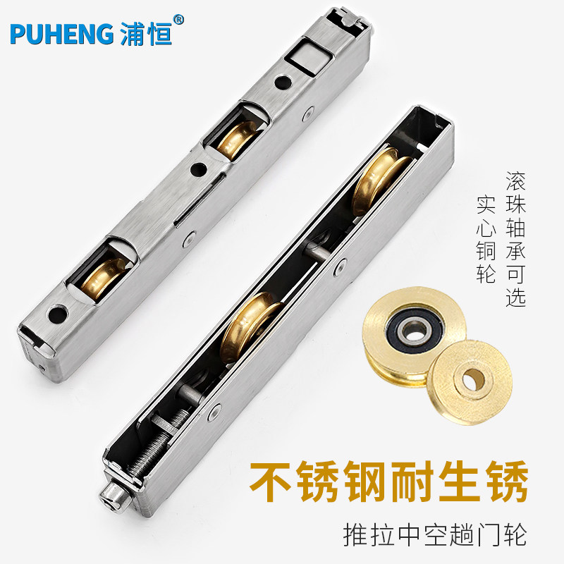 Poheng plastic steel moving door pulley stainless steel bearing double copper wheel push Ramen wheel thickness heavy door and window roller accessories-Taobao