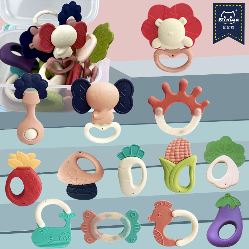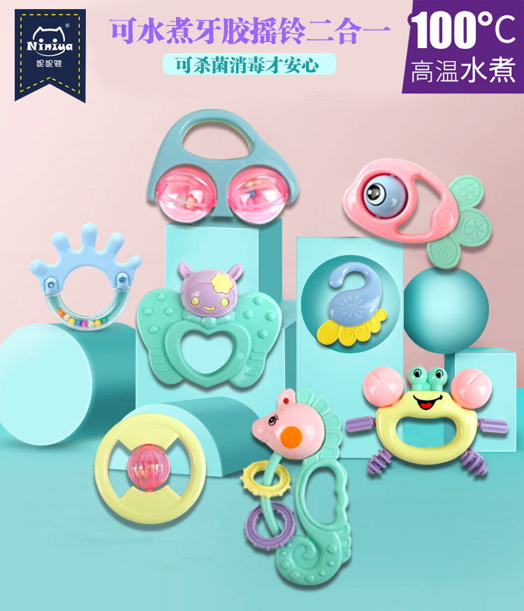 Baby hand rattle toy with water-cooking solid tooth-holder gripping puzzle 0-1-year-3-6-12 3-6-12-month newborn baby
