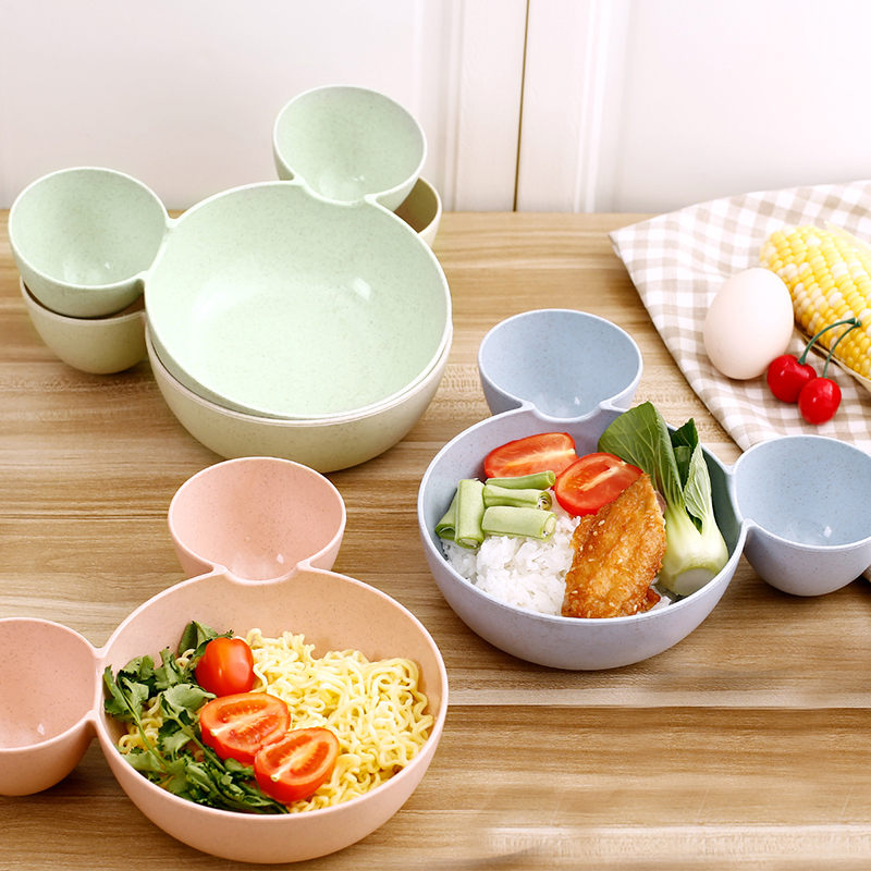 Cute cartoon wheat Mickey children's tableware set Household baby baby garden non-food bowl anti-scalding and anti-falling