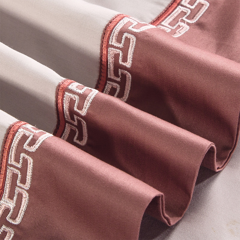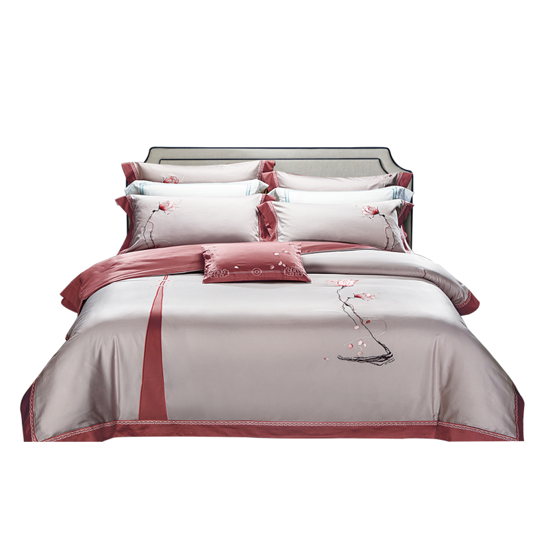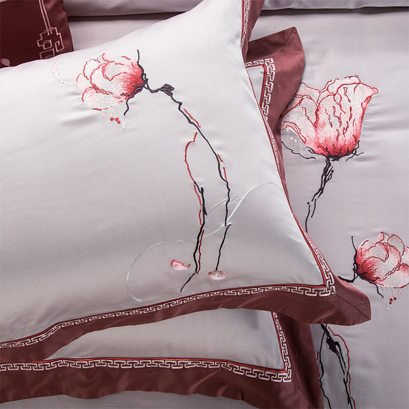 Su fan Home Textile New Chinese simplified Pure Color Embroidery Bed supplies 60 double-sided long suede cotton embroidered with four pieces
