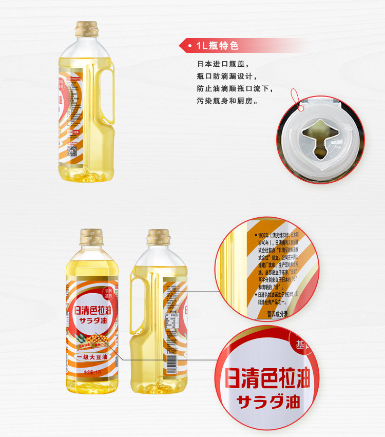(2 bottles) Nissin salad oil first grade soybean oil 1L baking vegetable oil light flavor small bottle oil